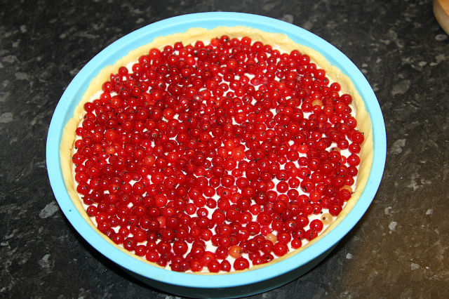 Пирог творожный с красной смородиной Мука - 250гр Масло сливочное - 150гр Сахар -200гр Разрыхлитель - 1ч.л. (я по старинке гасила соду в уксусе) Яйца - 3шт Смородина красная - 300гр (по желание любые другие) Творог - 500гр Сахар ванильный - 1пакет Сметана - 100гр В муку добавить разрыхлитель, масло (я его натерла на терке, можно и ножом порубить), вымесить до консистенции крошек. Добавить 100гр сахара, 1 яйцо и замесить однородное эластичное тесто, скатать в шар, завернуть в пищевую пленку (я завернула во что было, была бумага для выпечки) и убрать на 30 минут в холодильник. К творогу добавить два яйца, ванильный сахар, сметану, взбить миксером до однородной массы (я взбивала блендером). Еще знаю советуют творог протирать через сито. Форму для выпечки (будет удобно, если будет разъемная, я использовала силиконовую) смазать растительным маслом, выложить тесто и разравнять по дну с формированием бортиков в 4см, дно наколоть вилкой по всей плоскости и убрать в холодильник на 15 минут. Ягоды оборвать с веточек, помыть, обсушить. На тесто вылить творожную массу, разровнять убрать еще на 10 минут в холодильник. Выложить ягоды на начинку и поставить в предварительно разогретую духовку до 190 градусов. Выпекать 35 минут (у меня чуть больше пекся). Вынуть из духовки и оставить пирог еще на 10-15 минут. У меня после 10-15 вынуть пирог из силиконовой формы не получилось, он был еще мягкий , потому выше написала, что разъемная форма наверное будет удобнее. Но, но пирог я смогла удачно вынуть утром, на ночь убирала в холодильник.