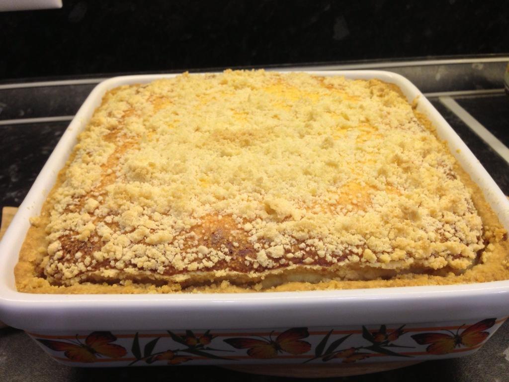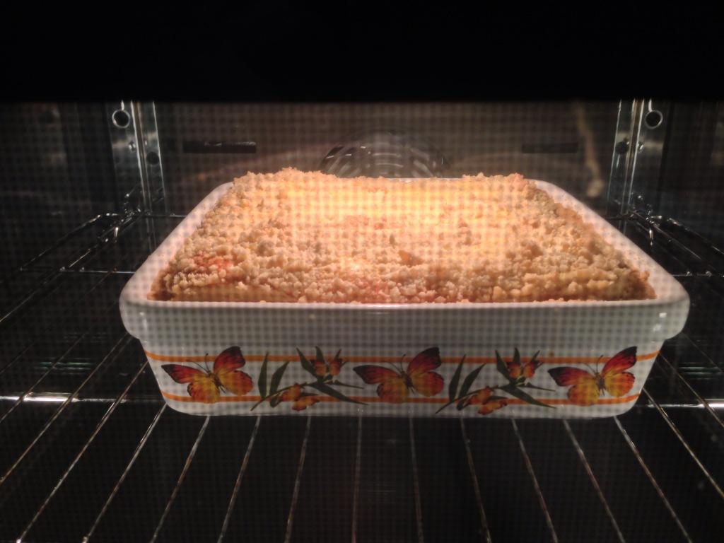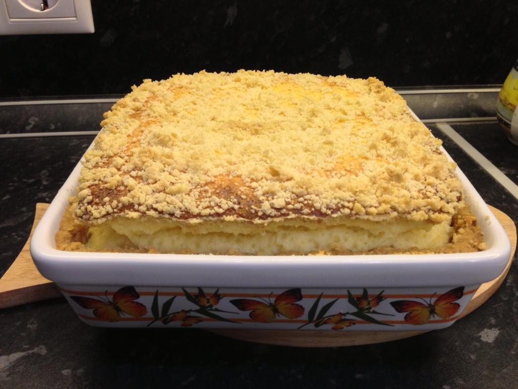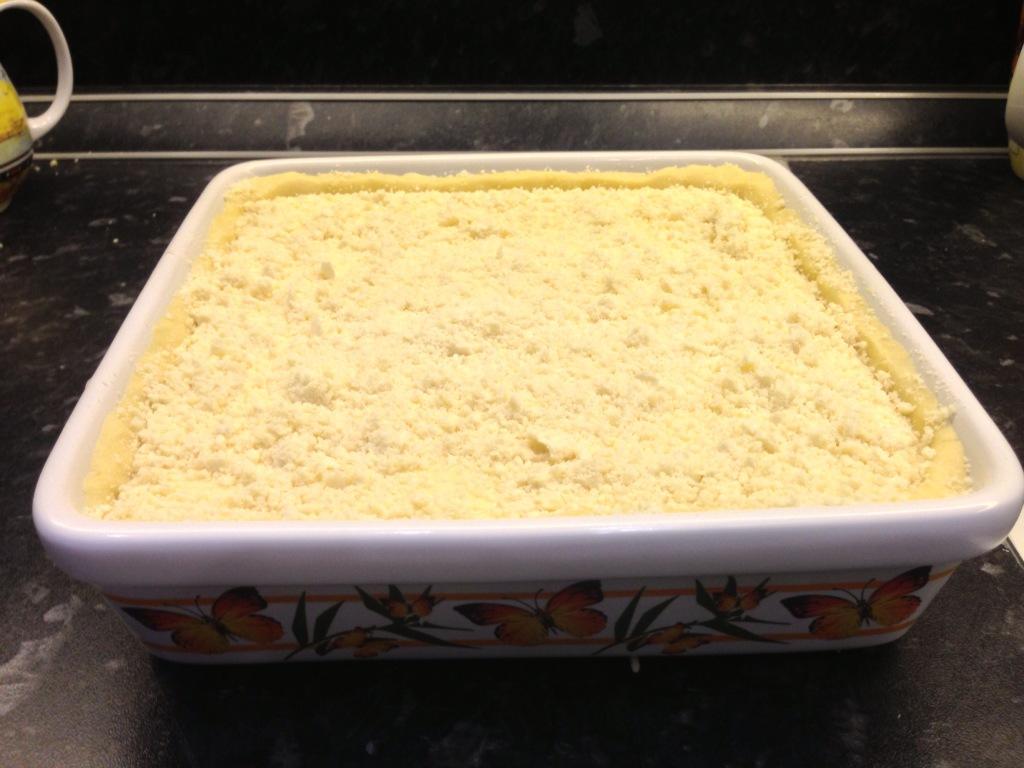 Посыпушка Тесто 150 гр. маргарина (я использую масло) 1 ст. ложка сахара 1/4 ч. ложки соды гашеной в уксусе муки на глаз Перетереть руками, муки добавлять до консистенции посыпки (крошки). Начинка, всё хорошо взбить: 6 яиц 1 стакан сахара (200гр) 2 пачки творога (400гр) 4 ст. ложки сметаны Емкость для выпекания посыпается большей частью посыпушкой-тестом. Вливается творожная начинка. Сверху посыпается остатком посыпушки-теста. В духовку поставила на 200С, но мне показалось это много градусов и я убавила до 170С. Как зарумянилось, готово. На фото, тесто у меня в этот раз замешано не до консистенции посыпки, только верхняя часть как посыпка.