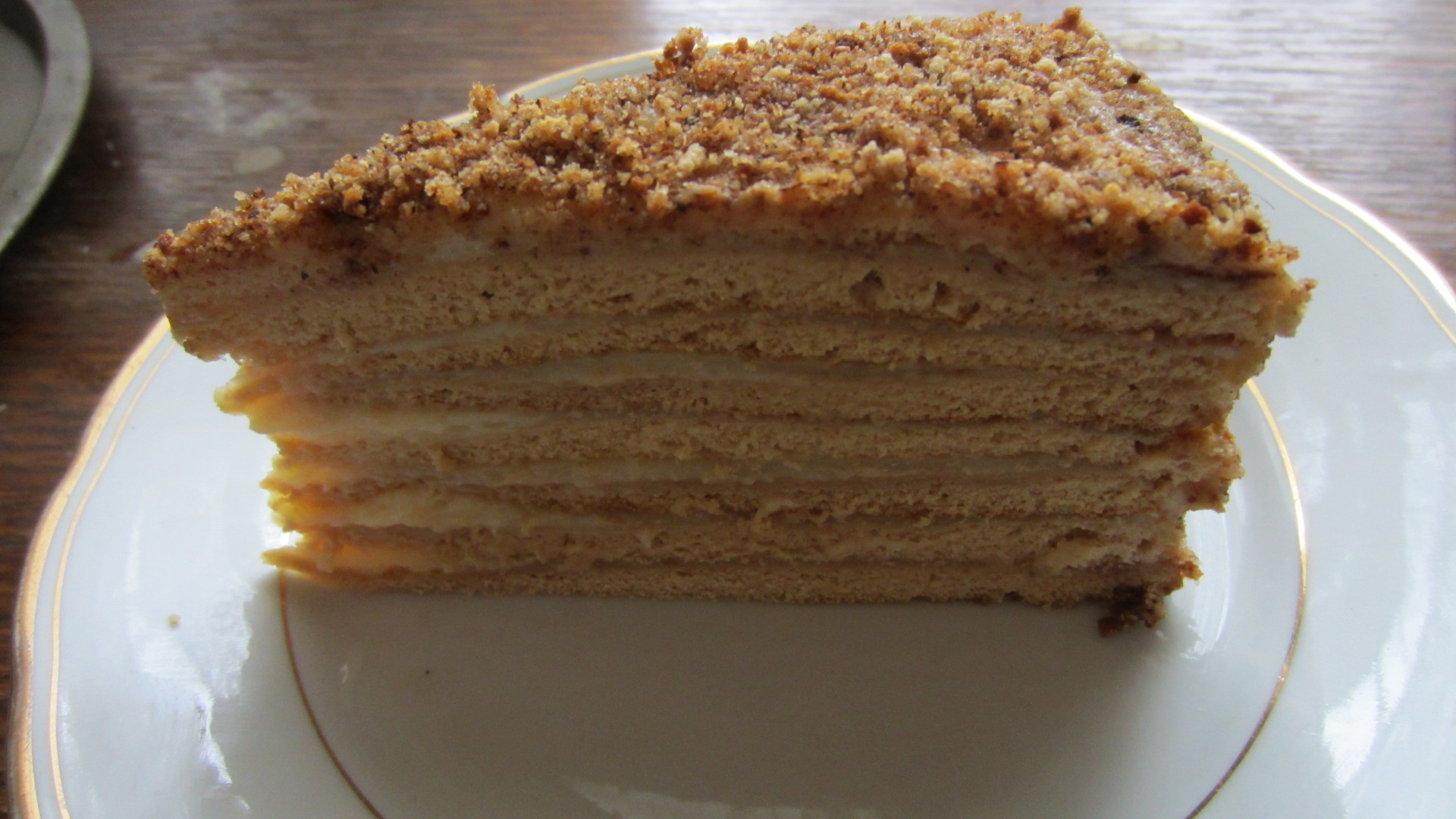 обожаю такие творожные посыпушки или королевские ватрушки, кто как называют и просто с творогом люблю и вишню добавлять и персики консервированные. Я на 8 марта с медовиком заморочилась, мега простой рецепт, только малость трудоемкий, пока один корж печешь второй катаешь и прям конвейер, секундой помедлишь - корж сгорит. Но за час управилась, коржи, несмотря на очень тонкую раскату были нежные ,мягкие. Правда я мед заменила тростниковой мелассой, не сильно люблю привкус меда в выпечке. На фотке немного бок смазан, но исправила, а сфоткать потом забыла. Крем заварной без масла
