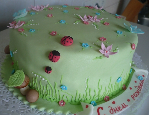 А это тортик просто для домашних. Мама приезжала, вот я и испекла к ее приезду. Этакая весенняя полянка на скорую руку Тортик небольшой совсем. Внутри медовик. Замечательный проверенный рецепт, обязательно выложу, сейчас что-тосил нет