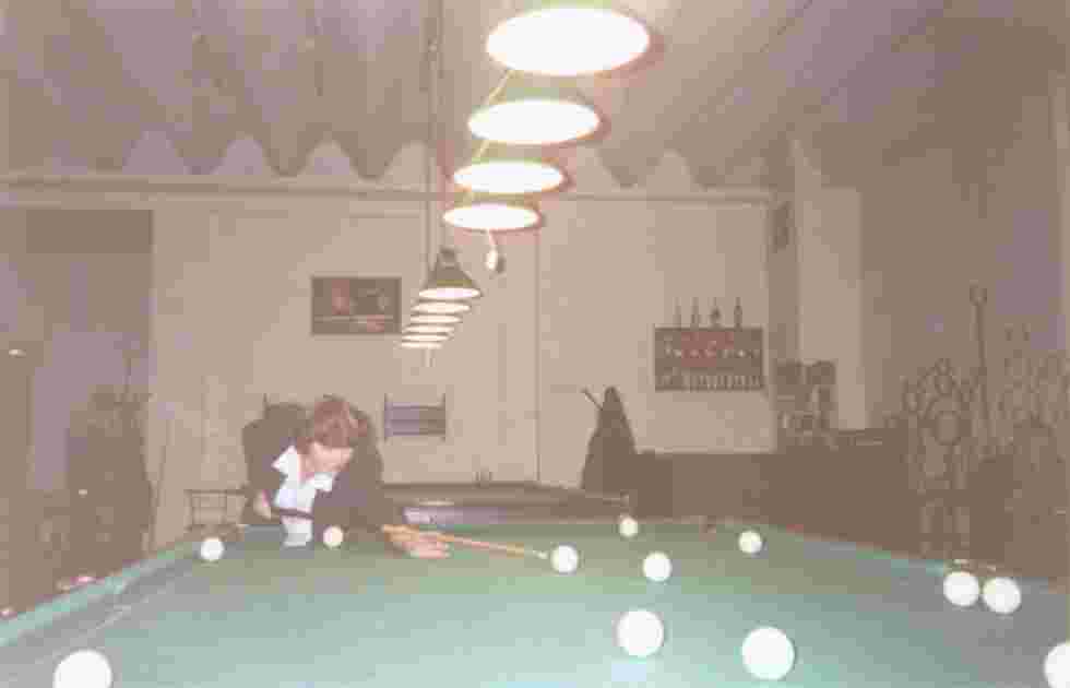 Ох! Как они учат играть! За каждый неправильный удар - кием по ...., ну в общем, сзади кием! А Серега так шариками прям в лобешник целится! Вчера чуть стенку в ДО не проломил!