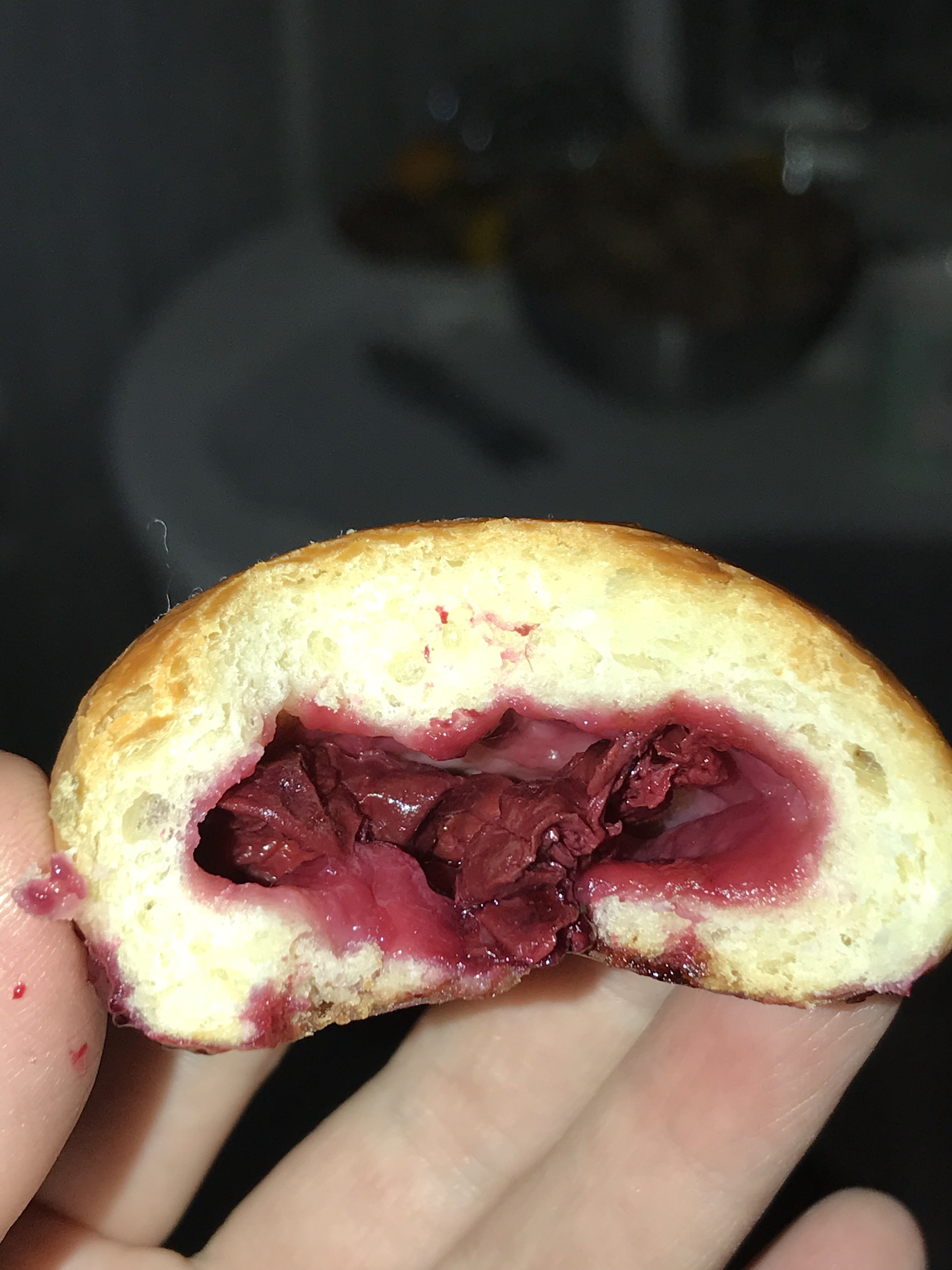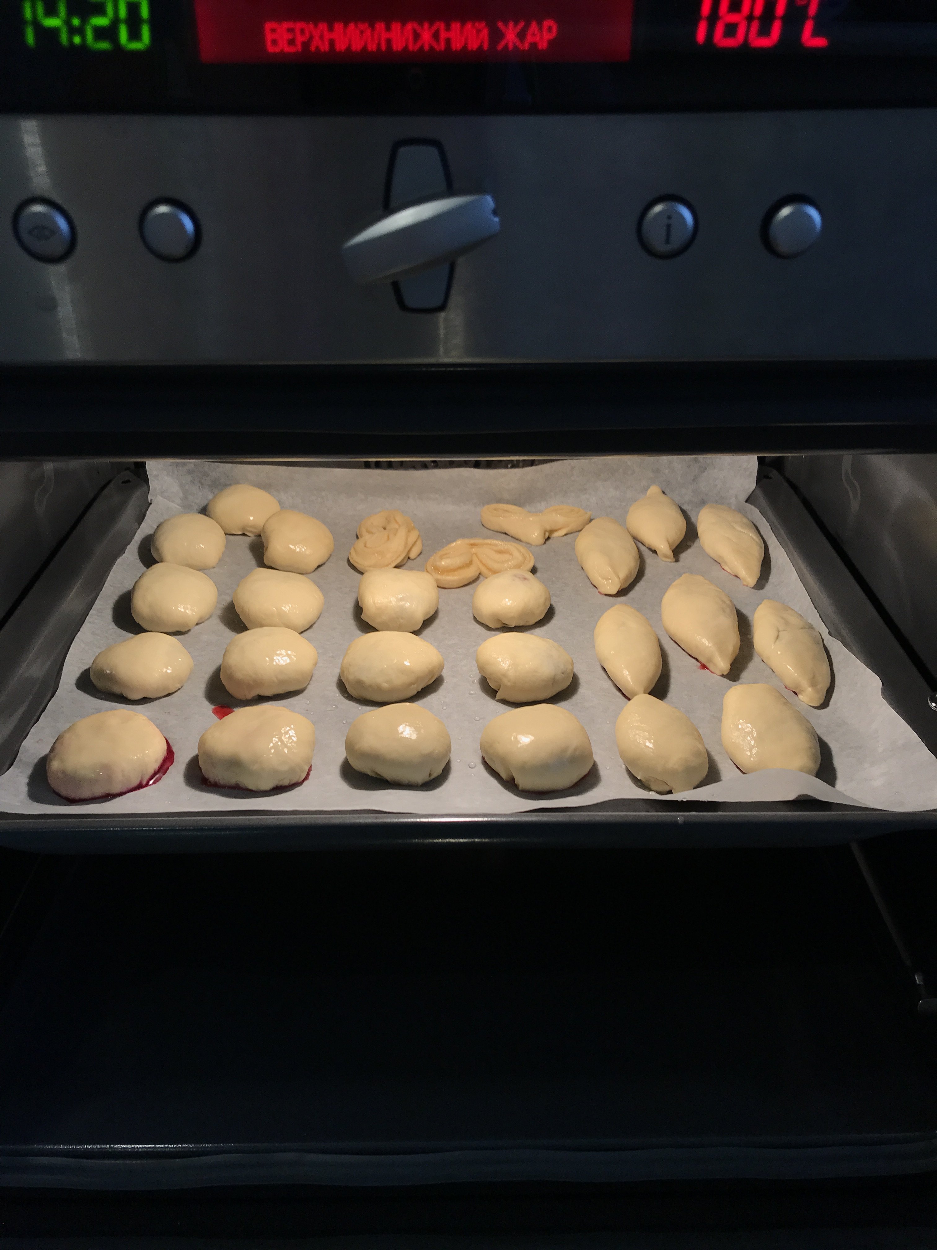 Выпечка тортов Это рецепт теста из которого обычно пеку пирожки, пироги, московские плюшки. Сегодня пекла пирожки, но тесто делала без яиц. Итак. Пирожки с вишней 250 мл молока 1 десертная ложка сахара 6 гр сухих инстантных дрожжей 50 гр сливочного масла соль щепотка мука, тут сложно сказать, не взвесила вишня, у меня была упаковка замороженной сахар В тёплое молоко добавить сахар, размешать, добавить дрожжи и оставить для набухания. Добавить соль, сыпать муку (примерно стакан), замешивать тесто. Добавить растопленное сливочное масло, перемешать, далее сыпать муку и хорошо замесить, вымесить тесто. Оно не должно быть тугим и не будет липнуть к рукам. Чашу накрыть и оставить тесто расстаиваться, дать подняться два раза, после третьего примятия начинаем лепить. Муку я сею через сито. На стол налить немного растительного масла, выложить тесто, нащипать шариков. Когда теста много, то его оставляю в чаше и постепенно отщипываю и леплю пирожки, а то заветривается. Из кружочков делать лепешки, в середину немного сахара (1/3-1/4 чл, в зависимости от сладости вишни), 3-4-5 вишен, залепливаем и кладём на противень, застеленный бумагой. По мне, так пирожки с вишней это ещё тот гемор, начинает выделяться сок и пирожки не слепливаются Мои руки на такую начинку не готовы) Сок с вишни убирала бумажными полотенцами. Смазала сладкой водой: 1ст.л. воды + 1ч.л. сахара. Налепила как смогла и отправила в разогретую духовку, режим верхний/нижний жар 180С. Зарумянились, достала, ещё раз намазала сладкой водой.