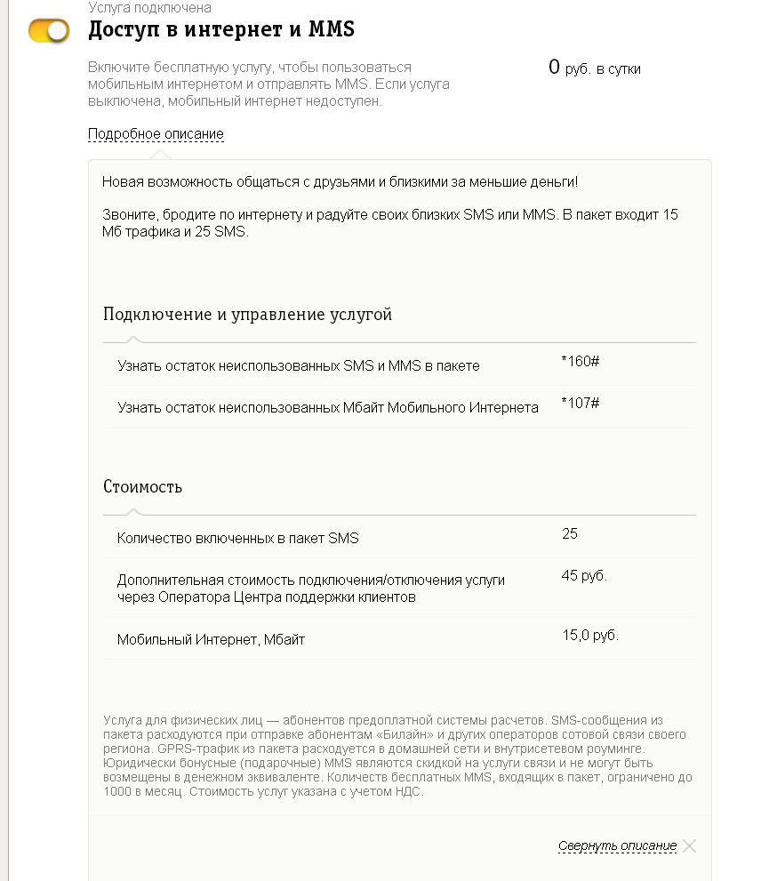вопрос риторический? но он таки всплыл! 1. на билайн 2. на остальные 3. межгород 4. и т.п. но это мои мысли , а должно быть.. ??? Короче Блайн даже буквы решил экономить PS их ЛК еще то гмо - либо информации нет по услугам: либо цены не актуальные.. Мало платят обслуге сайта! А кто объяснит вот эту услугу? Что это за пакет за 0 руб / 15руб/ в стоимости - 25 смс ?