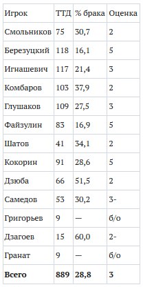 Единственное, мне все-таки, кажется, что на троечку Дзюба наиграл даже с таким большим количеством брака. Габаритного нападающего очень трудно оценивать. Вот он ставит "заслон" Кокорину, но мяча при этом не касается, тот выходит на ударную позицию и бьет. По Бубнову это неоцененное действие,а мне вот кажется, что действие полезное. Опять же, именно плохой Дзюба оставил мяч Кокорину во время гола, хотя мог и сам бить. То есть в ключевой момент сыграл правильно.