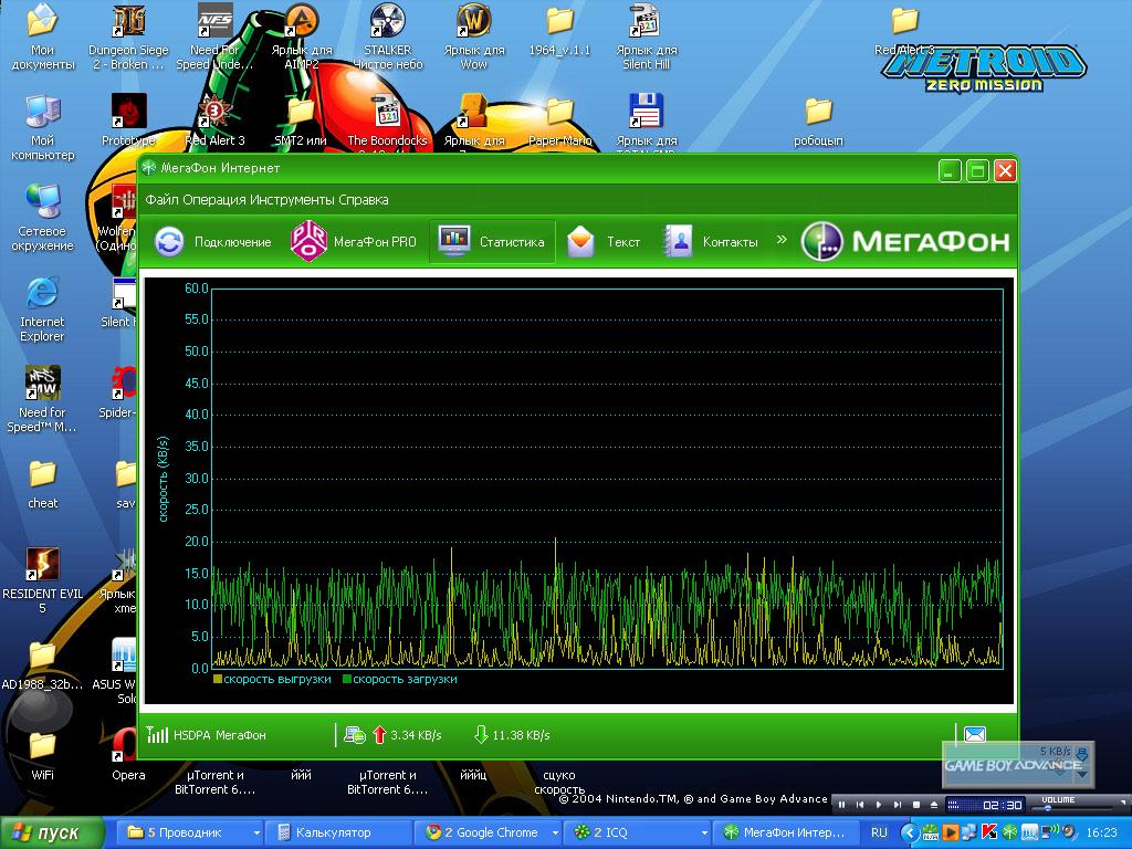 )))) у него скачит сам смотри до 3060 кб! а 1.5 метра эт примерно 1500кб ))))) а он в аське жалуется что эт маленькая скорость ) так говорит 2 метра в сек 2.5! а чё толкуто? полдня и нет двух гигов )) а потом скорость 14кб в сек МАКСИМУМ ))))))