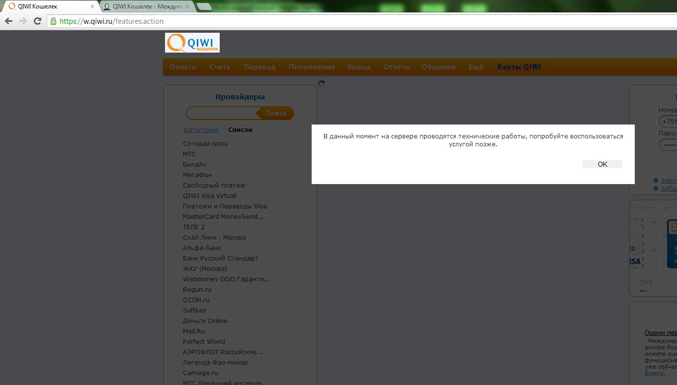 все так же мозилла файрфокс долгое соединение и сброс Хром превращает ссылку в https://w.qiwi.ru/features.action и поет про тех.причины свежеустановленная Опера ведет себя идентично мозилле