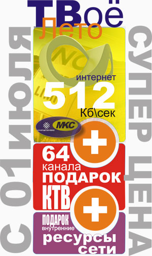 Если ты действительно админиш в МКС, как бы мне с тобой паресечься (On-Line). У меня есть несколько вопросов (относительна локалки) Стукнись об аську 282-714-767 (Пожалуйста). Я с табой полностью согласен У них на сайте написано:Бонусирование за объемы информации, представленной для файлообмена, будет действовать с начала предстоящего месяца. Для абонентов, представивших большие объемы информации для ресурсов файлообмена, будут представлены индивидуальные условия тарификации. Но, на заборе тоже написано. Лично я когда выбирал провайдера, я выбрал ЮТК только из-за локалки. А ни как не из-за того что инет у них ровный!!! В ЮТК тоже имеют как хотят, своего юзера. Благодарю за внимание, и надеюсь на понимание...