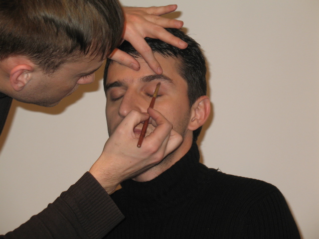 Проходившая мимо, Stacy, прородный колорит человека невозможно определить по описанию. Используется ТОЛЬКО оттенок кожи, ибо лишь он неизменен - с загаром или без. Для тестирования применяются специально окрашенные платки, которые прикладывают к коже и они дают странные рефлексы - вроде цвет человеку нравится, а кожа от него зеленеет или сереет. Значит, не его тип. А неприятный на вид холодноватый розовый почему-то делает лицо нежным и рефлекс красивый - его тип. Поскольку приложить тестовые сочетания, определить контрастность (по спец. шкале котрастов) в инете невозможно - я не берусь определять, опираясь на описание. Это может привести к тому, что вы начнете считать себя определенным колористическим типажом, а на самом деле являться им не будете. Конечно, ничего страшного, но по цветотипу многие стараются подобрать одежду и косметику, вот тогда уже хуже - не идет, а почему - непонятно. Извините, девчонки, но тут даже фото качественное не поможет. Я и в случае с глазом на 100 % не уверена. О чем написала. Для себя любимой жалеть не надо. А наборчики часто остаются наполовину вымазаными, наполовину нет - цвета не подошли. Для себя лучше брать 2 цвета или вообще один в коробочке. Зато точно свой. И выкидывать ничего не нужно - может статься, понадобится именно тот цвет, который в сердцах вышвырнули - ну, никуда не пригождался. Я со своими кучами косметики поступаю так: вижу - не пользуюсь -в коробку и в комод. А потом куда-то что-то новое одеваешь - не хватает какого-то штриха. Достала коробку - есть, но так, конечно, только с тенями - помады и тушь и т.п. не сохранишь. Пигменты надо уметь наложить. И они очень интенсивные по цвету или игре. Носить - куда? Вечером? Можно и яркое нечто сделать "мокрым нанесением" с Шанель или Буржуа - у каких теней такая функция предусмотрена. Будет ярко, красиво, наносить привычно. Лучше не тратить деньги на жбан пигмента, который будет стоять, такой красивый и ненужный. На фото: начало тестирования природного колорита человека. Мейк от Дениса Карташова: начало (проработка по тональному крему, коррекция) и окончательный результат.