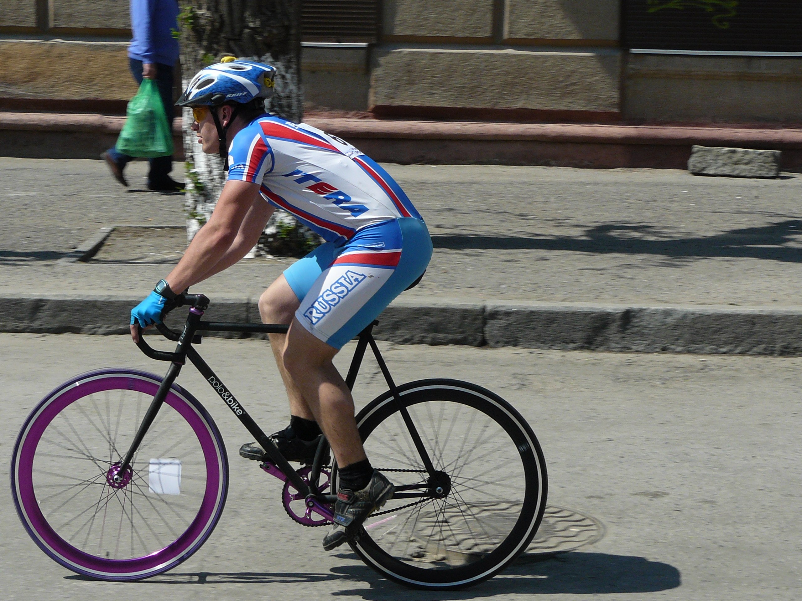 Пригласили поучаствовать в критериуме. Фикса у меня нет, но на гонку мне подогнали черно-фиолетовый Polo&Bike. Собственно, первый раз я поехал на этом типе велосипеда (до этого 50 метров с горем напополам не в счет).