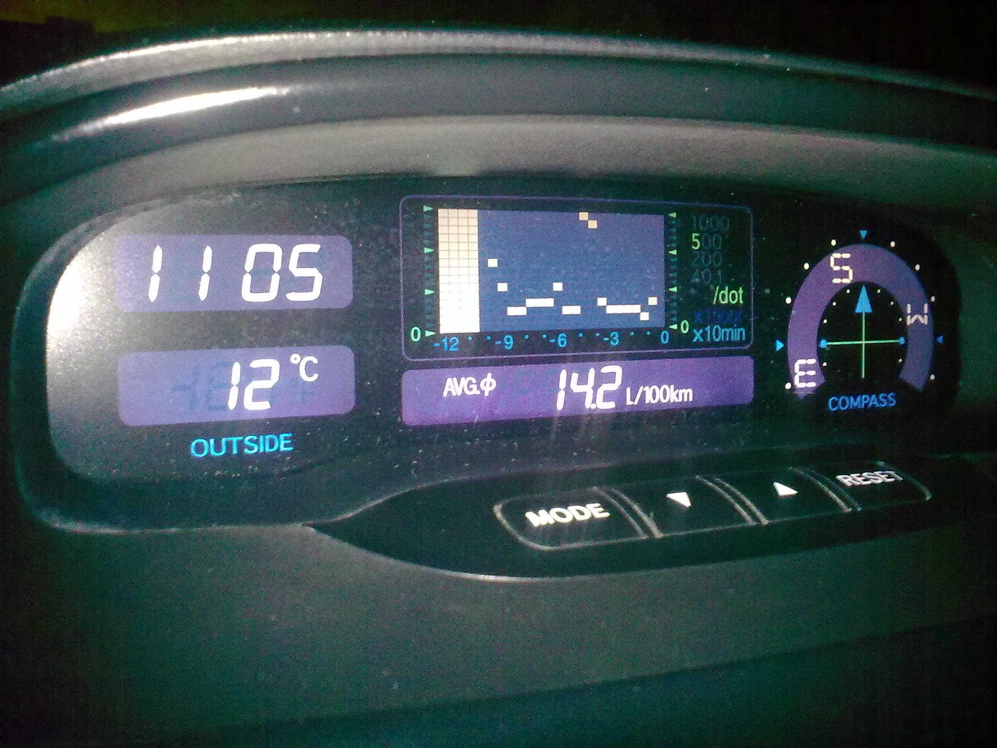 упс, В субботу слетела клемма с аккумулятора. Обнулился бортовик. После этого проехал около 60-70 км по городу в рваном режиме, часто нажимая газ в пол. Потом 60 км по трассе (100-120 км/ч) и около 20 км по городу с небольшими пробками. Расход сейчас такой показывает