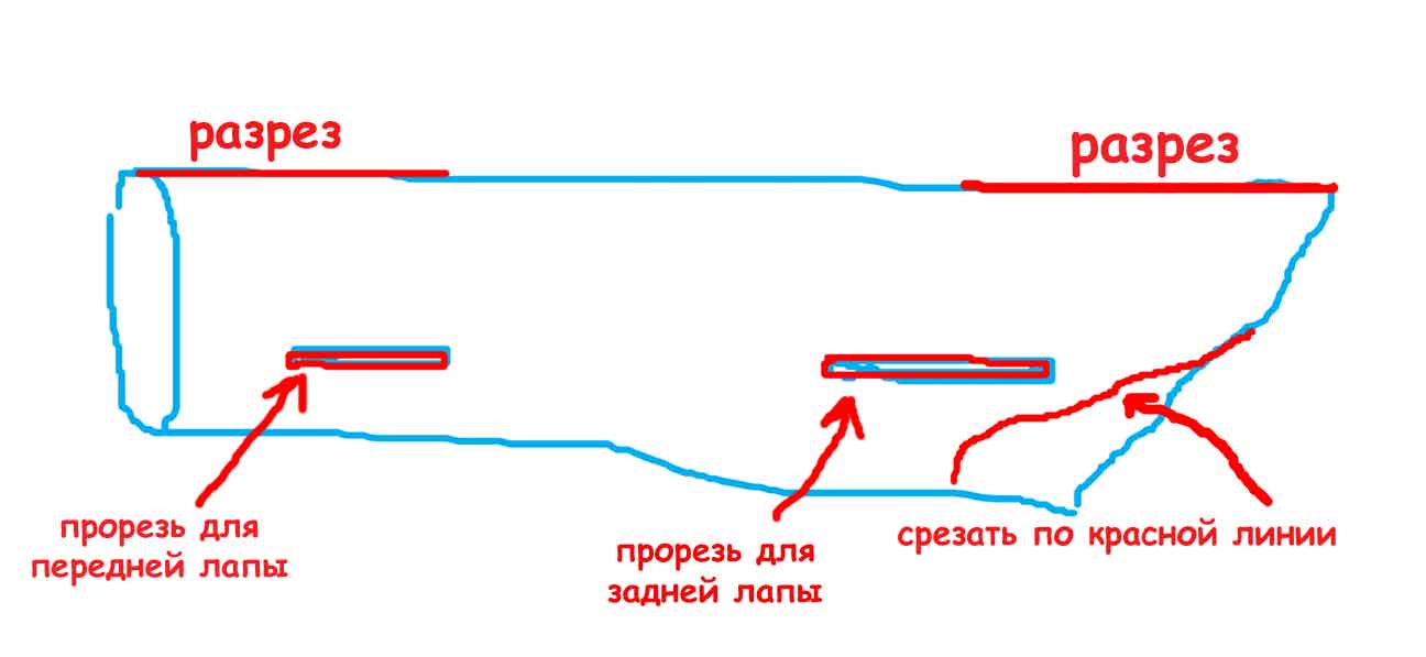 кстати - на рисунке срез который под прорезями для задних лап лучше потом немножко зашить, чтоб пузень не сильно вываливалась. рукав-то трикотажный, всё равно растянется и надевается-снимается без проблем. добавлено через 31 секунду Шмушмумрик - сообщите как дела у кис ваших... зажило или ещё в процессе?