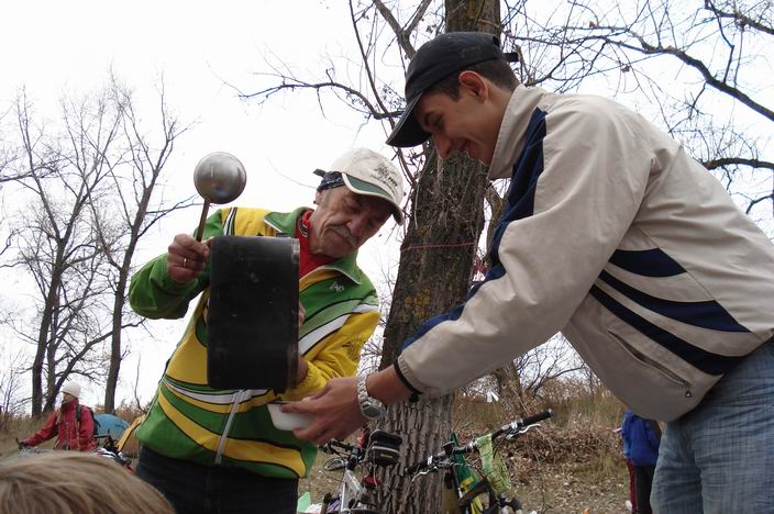 Немного слов... Была мысль поехать на Закрытие. Но останавливало нежелание тратиться на багажник, спальник и коврик. Палатку я не потянул бы (кредит брать не хотел и не хочу, занимать не пожелал). По большому счёту - уговорили, но я теперь и не жалею. Багажник купил накануне и отказался, на свою голову, от установки его на велосипед прямо в магазине (время было позднее). Провозился с его установкой, а также и с укреплением багажа так много времени, что однозначно опаздывал на 4-х часовой паром и едва успел на 5-ти часовой. Летел как угорелый на паром. Успел за две минуты до отбытия. На пароме я был не один, на Закрытие направлялись ещё Владимир и Людмила. Ехали мы вместе и заблудились также вместе. Поворот на Красный Буксир, как показал следующий день, не пропустили, но на переезде через оросительный канал свернули не налево, а направо. Направление оказалось неверно, но по осенним рощицам покатались, красиво. Даже когда вернулись, то снова свернули не туда, а темнеет всё сильнее. В общем, поплутали. Вышли на крики, когда Владимир стал звать. Нас встретили прогулявавшиеся учасники, показали направление. Пока звонил, выехавшему с командой нас встречать хакзону, отстал. Доезжал один. Еду, фара горит, налобник горит, жилет моргает, фонарь моргает. "А это человек?" На участке перед въездом в лагерь съехал в кювет. На спуске приветствовали, ослепив вспышкой фотоаппарата, криком "Наши едут!" Оля (Maja) и Катя. Я в восторге, пусть и немного уставший. Вот и "наше" место стоянки. Окола часа отдыха и начинается торжественная часть. Интеллектуальное соревнование, а за ним интеллектуально/физическое (ориентирование): едем по легенде, ищем, лазаем, едем... Действительно, столько усердия, да в нужное русло... В срок вернулись в лагерь, вся команда ушла на "разборки" с организаторами, а я решил дров попилить, погреться. Но не тот ствол выбрал - едва распили с Jazzer-ом. Погрелся хорошо. После кружки чая разморило в сона назаватра на работу, поэтому ушёл спать. Утром обнаружил, что палаток гораздо больше, чем было видно вечером, оно и понятно - темно было. Небольшие сборы и поехал с сопровождавшими меня до асфальта хакзоном и traMway-ем. На асфальте распрощались, дальше один. И всё против ветра. Не опоздать бы на паром. Прилетел (это по усилиям если судить, а не по скорости) за минуту до отправления! Успел! Ура!!! Maja ответной SMS-кой порадовала, что "встающий народ аккумулируется у нас" (у нашего костра). Закрытие летнего велосезона 2008 считать проведённым хорошо!