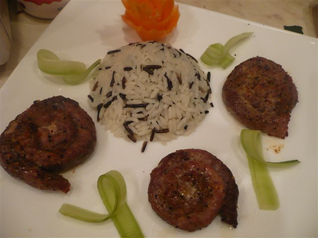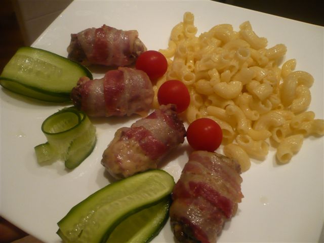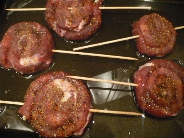 Главное в приготовлении мясных блюд - это качество мяса. Я покупаю у одной и той же девушки на рынке. Она для меня лучшие кусочки выбирает и мясные блюда всегда удаются на славу Вот один из вариантов: Рулетики из свинины в беконе. Свинина(крестец или шея - пожирнее будет) Бекон сырой- несколько полосочек Сыр любой по желанию - для начинки зелень любая - для начинки чеснок - 2-3 зубчика соль перец Режем свинину кружочками (как на отбивную) шириной около 7 мм. Отбиваем хорошенько, солим, перчим и натираем чесноком. Внутрь кладем веточки зелени, сыр, нарезанный брусочками и сворачиваем в рулетик. Каждый рулетик обматываем полосочкой (или двумя) бекона. Заворачиваем в фольгу и на 25-30 минут в духовку. ммммм.... получаются сочные, нежные рулетики. Внутрь можно класть любую начинку - чернослив, вареную морковь, и т.д. В принципе можно обойтись и без полосок бекона (на фото), но с беконом мне больше нра....