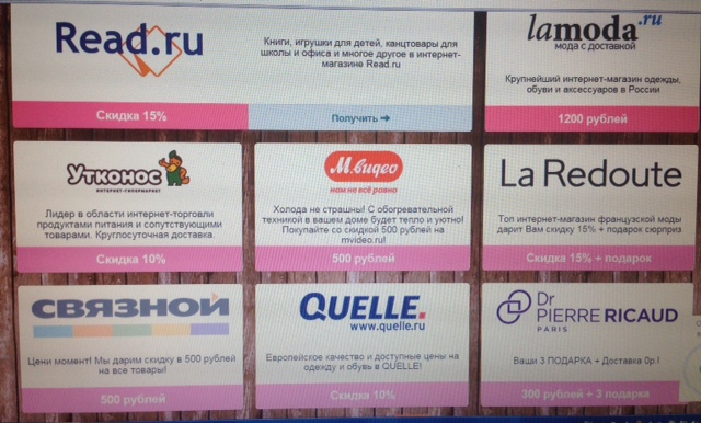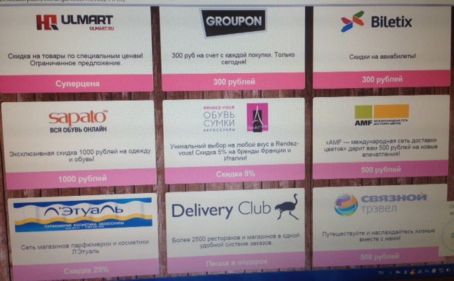 Кому скидку? Одну из представленных на фото могу выбрать и отдать. Там еще есть подробности и правила предоставления, если что-то интересно, открою гляну и отпишу здесь.