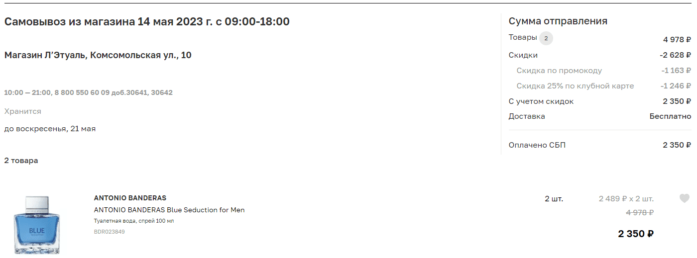 Прямо сейчас в Летуали работает код START. Скидка 1500 на заказ от 4000, совмещается с 25% карточной скидки, что неплохо. Пример: