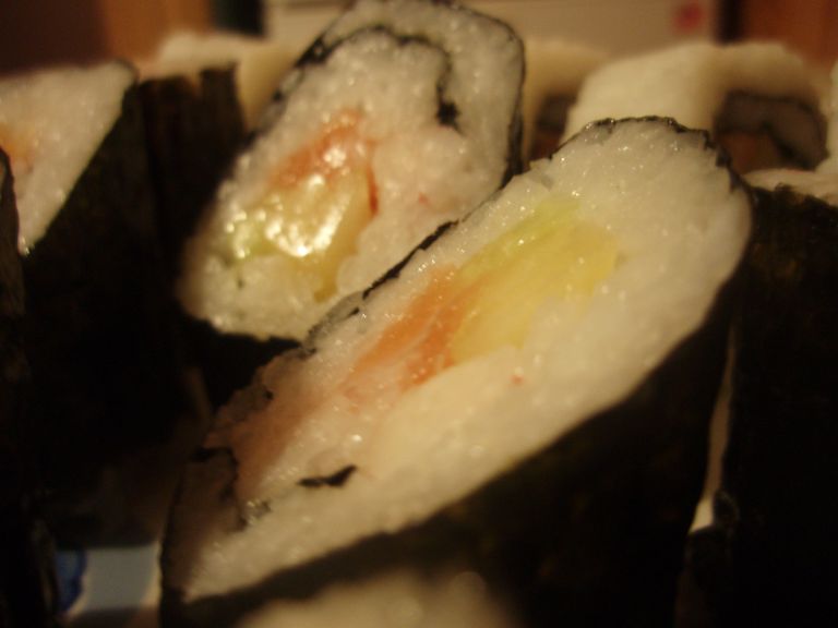 В первый раз получилось не очень. Свернула я их не плотно и поэтому когда резала они разваливались сильно, хотя вкусовых качеств это абсолютно не испортило. А во второй раз уже лучше. Вот толстые "на изнанку" роллы делать научилась. Только не знаю где тобико (икра летучей рыбы) купить? Не видела её нигде. Может быть кто видел в магазинах?