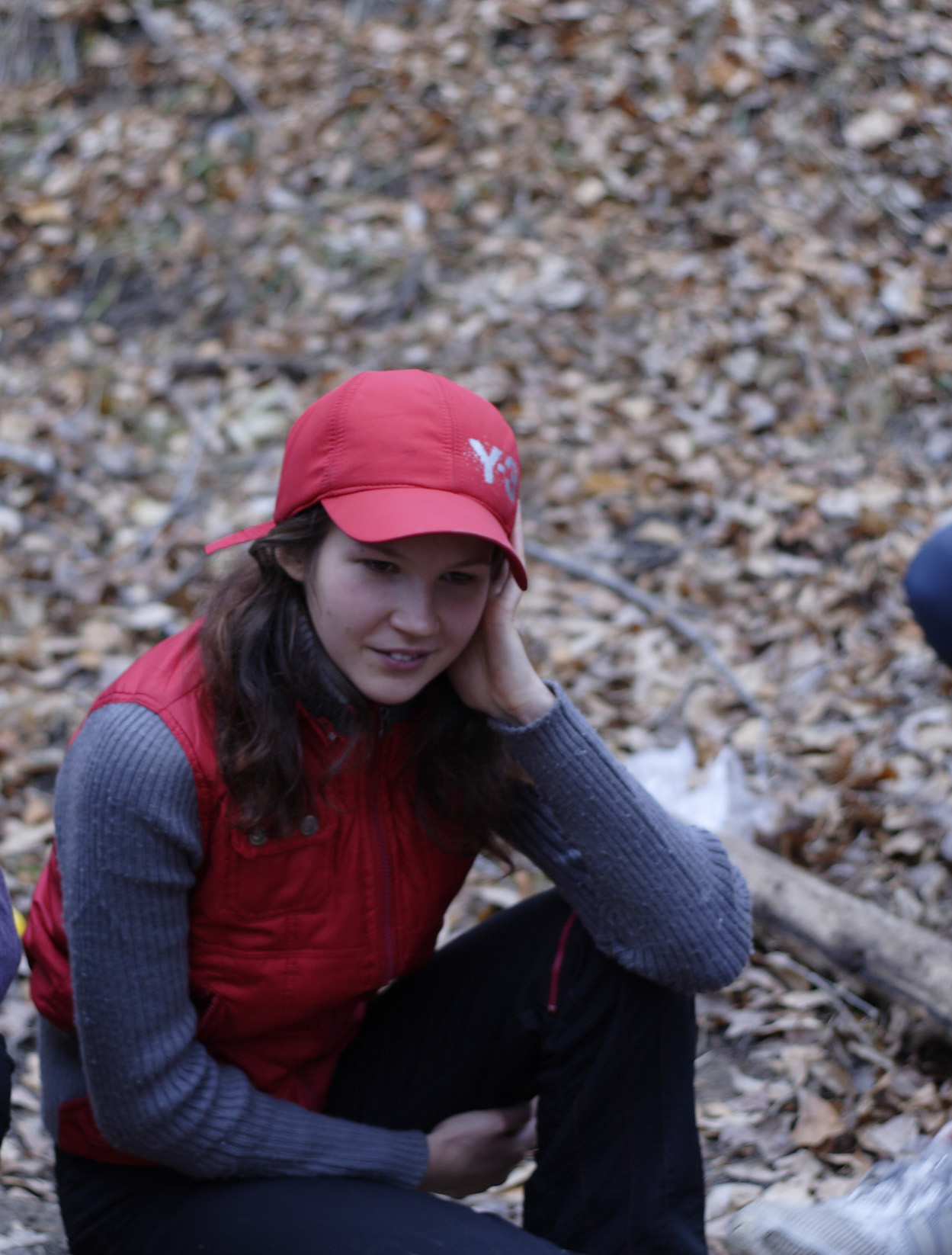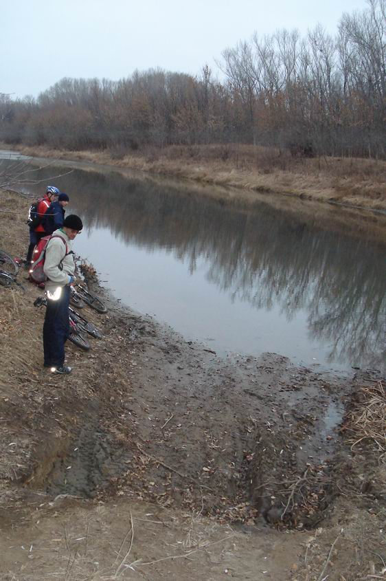 Бывают дни, когда забываешь обо всем и погружаешься в текущий момент. А потом, если закрыть глаза, перед мысленным взором снова и снова встает одна и та же картинка. Так, раньше после разведения костра на даче до конца дня перед глазами плясало пламя. А после дня, посвященного сбору грибов – хвоя и лаковый масленок. А сейчас я закрываю глаза и непроизвольно возникает фигура в шлеме, стоящая за рулем велосипеда. 11 единомышленников (9 мальчиков и 2 девочки), 13 часов на свежем воздухе и 7 часов в движении – не каждый так проводит выходной день. А нам повезло! На 8-часовой паром собралось 8 человек. Понятно было, что нас будет немало, а потому мое предложение о кораблике (холодно на пароме в ноябре!) отклонили и выбор был сделан в пользу парома. Погрузились, утеплились дополнительными свитерами и шапками. А зачинщик PSV, как оказалось, приедет на кораблике! На той стороне встретились с ним и отправились в путь. Был предложен вариант с бродом, но мы с Катей категорически отказались. Поутру было прохладно, ноги у меня замерзли еще на пароме и мысль о речной воде вызывала только дрожь. Но в течение дня стало ясно, что с погодой нам повезло. Ветер был несущественный, тепло, дождя не было, грунт везде сухой – как по заказу! Свежекупленные горнолыжные перчатки скоро сменила на более тонкие. Чаще было жарко, чем холодно. Скоро возникли и обещанные грунты. На асфальте мы действительно оказывались редко и ненадолго. Ехалось по сухому грунту замечательно! По размокшему, да при встречном ветре тяжко это, сразу на асфальт хочется. А нас не покидало ощущение, что практически постоянно нас подгонял попутный ветер. У меня возникло удивительное чувство уверенности и безопасности. То ли в сравнении с крупными дорогами, по которым часто ездили в последнее время, где твои маневры ограничены неровной обочиной с одной стороны и несущимся транспортом с другой, а под колесами того и гляди возникают неровности, которые не знаешь, как и объехать безопасно. То ли вспомнились первые поездки в прошлом году, когда об опасности я еще не задумывалась. То ли просто был очень хороший грунт, от которого не ждешь подвоха. А как приятны горки, на которых не надо переключаться, достаточно заранее подразогнаться и по инерции ты уже на вершине, без особых усилий! А узкий туннель между стенами камыша! Через некоторое время поступили вести, что еще два человека жаждут к нам присоединиться через 20 минут. Мы ждали их на том месте, где в октябре отдыхал Велопоезд из 16 человек. Быстренько развели костер, подкрепились. 20 минут давно истекли. Терпение иссякло, и мы стали собираться, чтобы поймать подкрепление уже на дороге. Ведь была заявлена серьезная цель, а любоваться поймой лучше все же засветло. А тут и «опоздуны» подъехали. Вперед! В соответствии с заявленной категорией покатушки - «разведывательная», неоднократно мы упирались в тупик или понимали, что избранная дорога ведет в противоположную сторону от требуемой. Изредка въезажали в песчаные участки, где некоторой части участников приходилось спешиваться. Обогнали мужика, бегущего трусцой на пару с собакой, уверенно признав в нем аборигена. Но когда немного заплутали в очередной раз, встретив его снова, выяснили, что мы одной крови – не местной. Как водится в большой группе с разными возможностями участников, останавливались мы часто, жда