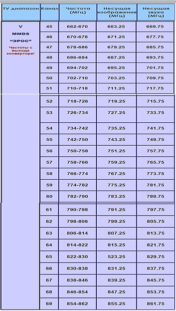 Подскажите точную частоту каналов (установлена антенна MMDS) на сайте не указано ( http://www.eros-tv.ru/services/mmds_channels.php ) (((