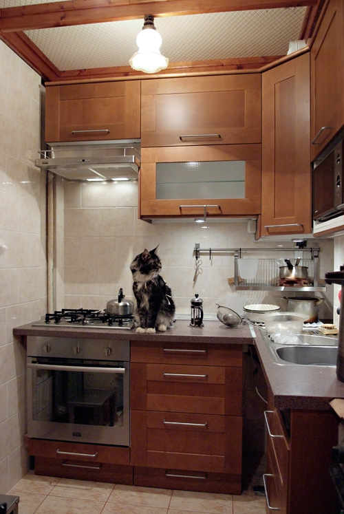 размер 6 на 3. Сейчас 5 на 3, но рядом огромная кладовка более 2 метров, собираемся ее уменьшать, увеличив кухню. честно говоря сами не знаем как лучше, мн еочень хочется кухню разграничить. пока мыслим так: у стены холодильник. а потом гарнтир. Опять же туда должы войти плита (60см) плюс мойка (пусть 80) да еще и какие-то рабочие поверхности между ними, плюс этот угол, тоже как рабочая поверхность. в общем самим додумтаь ума по любому не хватит. а щас вроде что-то обсчитывать рано, так как кладовку еще не убирали и точно не знаем, насколько кухня выиграет в метраже. те.е. с "компоновкой" что куда не определились, так же как с расположением духовки и т.п. а еще ведь нужно место для техники (по крайней мере той, которая используется ежедневно: кофеварка, микроволновка, чайник, остальное можно убрать в шкафы). короче чем ближе к сдачи дома тем больше кругом голова так как самая главное проблема - что сами точно н езнаем что хотим.