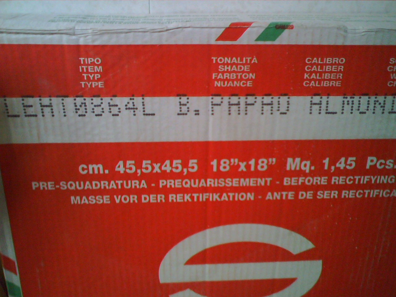 1,2. Малые квадраты из третьей пачки - с фаской и светлее, остальная плитка без фаски и одинаковых расцеток. 3,11. Упаковка больших квадратов. 4,5. В таком виде была упаковка малых квадратов. 6. Обратная сторона МК из третьей пачки - слева и из двух первых. 7. Биение размеров квадратов первых двух пачек. 8. Кромка большого квадрата и скол на уголке малого - таких было не мало. 9. Углы большого квадрата - "почти 90*". Таких плиток было две. 10. Обратная сторона больших плиток. Хай-тек, чёрт возьми! 12. Брак шлифовки малых квадратов - таких было 3. Уклали их по углам кладовки.