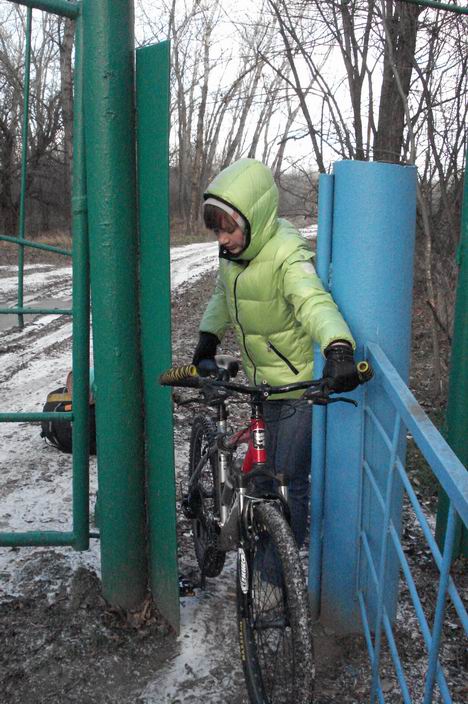 А дальше мы катались. Скорость держали совсем небольшую, для Нины. Дорога была непростой, грязь подмерзла и не скользила, но все время нужно было выбирать подходящую колею и высматривать лужи подо льдом. Мы то немного подмерзали, но отогревались, ветер дул то в спину и вырастали крылья, то в лицо и мы понимали, что зима, однако. Иногда появлялось солнышко, и хотелась неспеша ехать и впитывать лучи. Я ехала преимущественно в авангарде, как того требовали мои условные тормоза. Раз мы доехали до развилки, когда я была позади Андрея, и он затормозил, резко, но не слишком. Жму на передний тормоз - и понимаю, что не успею, пробую объехать - скольжу и падаю. Но удачно.