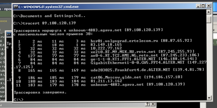 а что бы это значило? первый сервак это московский по контре. а почему трасировка не через зимбабве пошла? там по кокосвым пальмам скорость наверное быстрее передается. И вобще почему у меня комп определяется расположением в перми? з.ы. а я еще удивлялся че это с немцами пинг 70-80 ночью, а с москвой вобще играть нереал....
