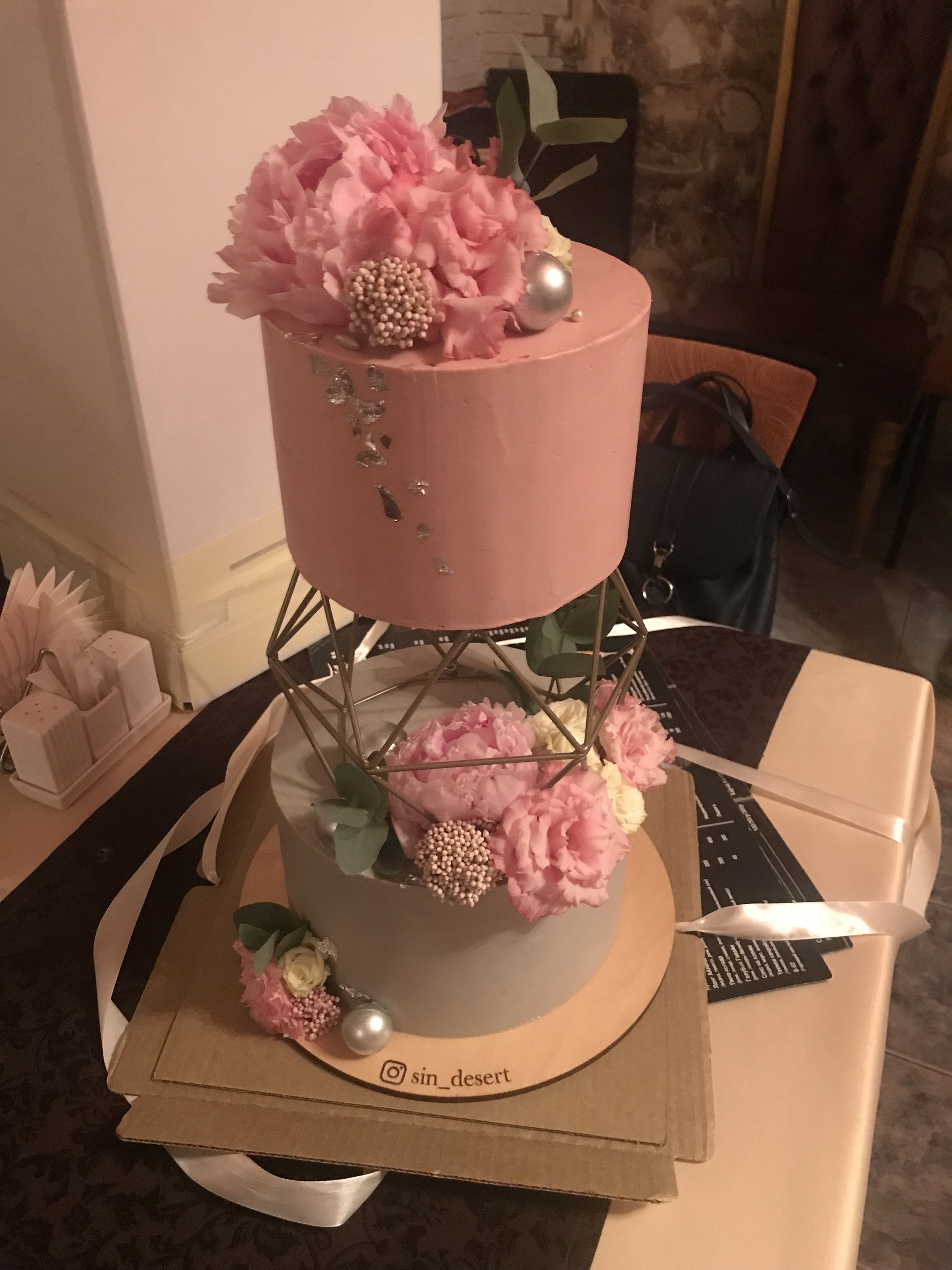 Торт. Торт был ********** вкусным! Рассчитан был на большую компанию, но сожрали мы его и маленьким составом сразу))) Красный бархат и шпинат-лайм. И ещё нам подарили вазу, которую я назвала своим новым бокалом для вина)