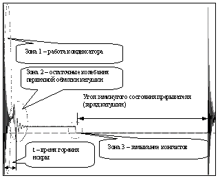 какие? это видно на сцилограмме вторички да как, пока контакты разомкнуты , на другом конце от входа катушки будет присутствовать напряжение сети,( тк сопротивление оч.мало) как только контакты замкнуться ,то и напряжение упадет практически до нуля.