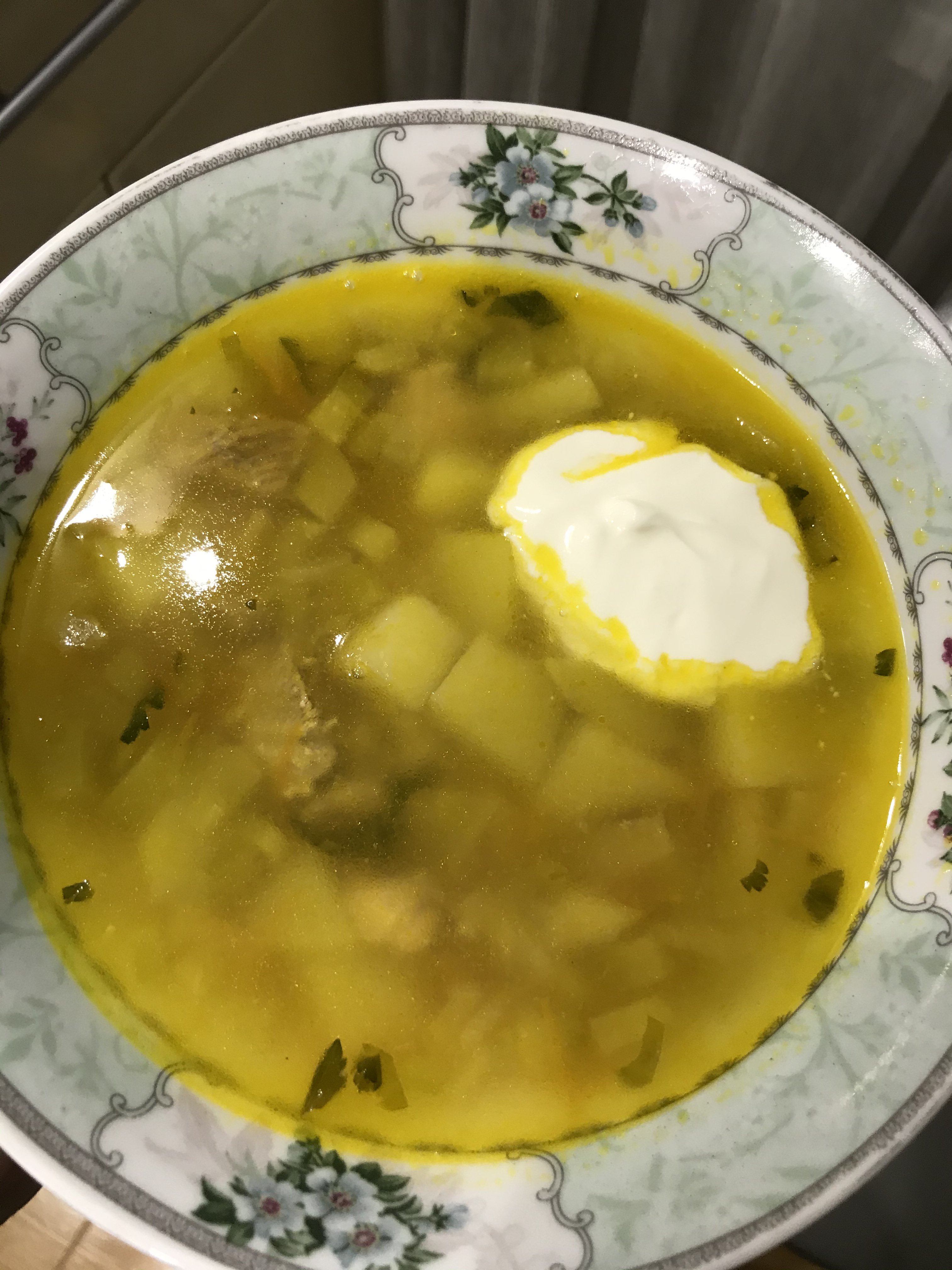 Вчера в ночь поставил суп. 1Кг мяса, 3 луковицы, 50гр гречки, 80гр гороха. Ни че так. Но по мне мяса многовато, т.к. жирноват бульён