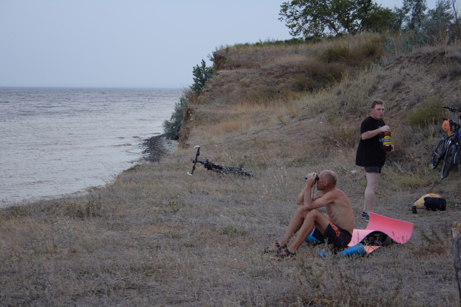 В предверии нового сезона, т.к. потихоньку расскатываться можно будет уже при +5, с марта месяца. Хочу вспомнить некоторые ПВД, самые запоминающиеся и хоть как то сохранившиеся в фото. Цель - нам вспомнить, тем велотуристам кто за сезон наезжает 1-2 т.км зажечся на подобное, а тем сочусвующим сидящих на скамейке запасных и опосающимся сделать первый шаг к велосипеду - сделать его. Далёких покатух не было, были Дон и Дубовка по два раза. На Дон туда на электричке, оттуда своим ходом. И в Дубовку, туда через Орловку, Каменку, Челюскинец оттуда по трассе. Вот это было что-то. Я про Дубовку, путь туда. Очень не хотелось идти по трассе, узкая с разбитым покрытием и изматывающими подьёмами. Альтернатива вдоль трассы, в достаточном удалении, что бы было чем дышать, и на что смотреть, с экстримом первопроходцев. Интернэт, снимки из космоса показывают дорогу. Фотаю на всякий случай и с друзьями рвём с утра пораньше. Сначала Городище, следом Орловский карьер. На карьере остановлюсь поподробнее, на снимках с космоса видно образовавшиеся озёра на месте разработок и отсюда немыслимая тяга искупаться на посошок после города. Заезжаем, спускаемся к озёрам и в воду.Фото 2. Вы когда нибудь купались в Живой Воде, истинно она живая. Купаешься и пьёш прям с поверхности, ведь по сути это колодизная вода согретая солнцем и не засранная гомосапиенсами. Незабываемое впечатление и что ещё не маловажно, песок. Девственно чистый. Но Вы туда не ездейте, чище будет. Выезжаем с карьера, переезжаем ж.д. дорогу и вот она - СВОБОДА ! Чистое поле, солнце, накатанная дорога и ни кого кроме птиц. Едем, наслаждаемся тишиной, воздухом, дорогой, свободой, одиночеством. Везде до горизонта никаких труб, высоток и прочей пакости, только поле с бескрайним океаном дышащего на тебя воздушного простанства. Если по трассе, то до Дубовки 60км от центра, а по полям около 90. Небольшими 30км пробегами, с зачётнийшами спусками, через недостроенный Волго-Дон 2 и водную артерию питающую Городище по самым что ни на есть Волгоградским полустепям, от посёлка до посёлка с небольшими перекусами, купанием в ручейках с родниковой водой и беззаботным общением в здоровской компании, пролетает день и ближе к вечеру мы у цели. ПредДубовочка, берег Волгоградского моря скидываем лишнее и на волны. С какой то чистой, детской радостью и криками барахтаемся в живительной воде, с чувством полного счастья которому ничто не может помешать. Думаю именно таких моментов недостаток в нашей жизни, и ПВД отлично восполняют дефицит положительных эмоций, давая такой заряд, что даже через полгода вспоминая, наполняешься добром, теплом и светом. Вдоволь поплескавшись, разгрузив рюкзак - в магазины за вкусняшками, не забыв остановиться у доревалюционных лавочек и потрогав кольца к которым когда то привязывали лошадей. Оборвав спелых яблок на одной из улиц, затарившись в магазине едой, возвращаемся на стоянку. Я недалеко оторвался от группы, меня обгоняет УАЗ с местной братвой, замедляеться, в окно один спашивает - Место жительства, - Волгоград, отвечаю. - Куда едешь? - На берег! Уезжают. Бомбят потихому иногородних наверное. А в лагере, навалив леса сухостоя сколько надо, мастырим костерок и готовим еду. Поглащая её с таким треском за ушами, что окрестные кузнечики эвакуировались в прошлое. И оцените ландшавт который был тщательно обсле