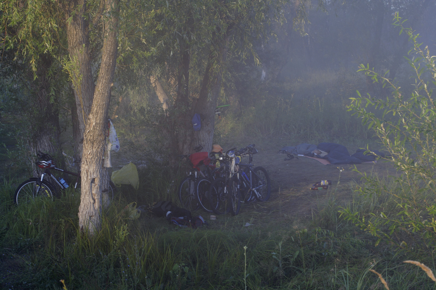 И в качестве десерта, фотоассорти Фото 1 Дубяра в Дубовке, ровестник Царицина Фото 2 Приезжий пипл наивно вешает ленточки, также наивно ломая ветки Фото 3 Romashka напевая, А я зделан из мяса, чистит картошку Фото 4 Плохо теплокровным без спальника Фото 5 А зори здесь тихие, пока спят Велогастеллы Фото 6 Они нас такими сделали Фото 7 Пойма живёт своей содержательной жизнью Фото 8,9 Эх, лето... . Фото 10 Клюют здесь только рыбаки, и то носами Фото 11 Меня, будить ? Я Боря ! Змеи в ужасе выворачиваються наизнанку и прикидываються скошенной травой. Фото 12 Веловодовоевода, не могу я жить без брода, БАААНЗАААЙ ! фОТО 13 Это будет с авто каждого автохама на дороге, бойтесь... .