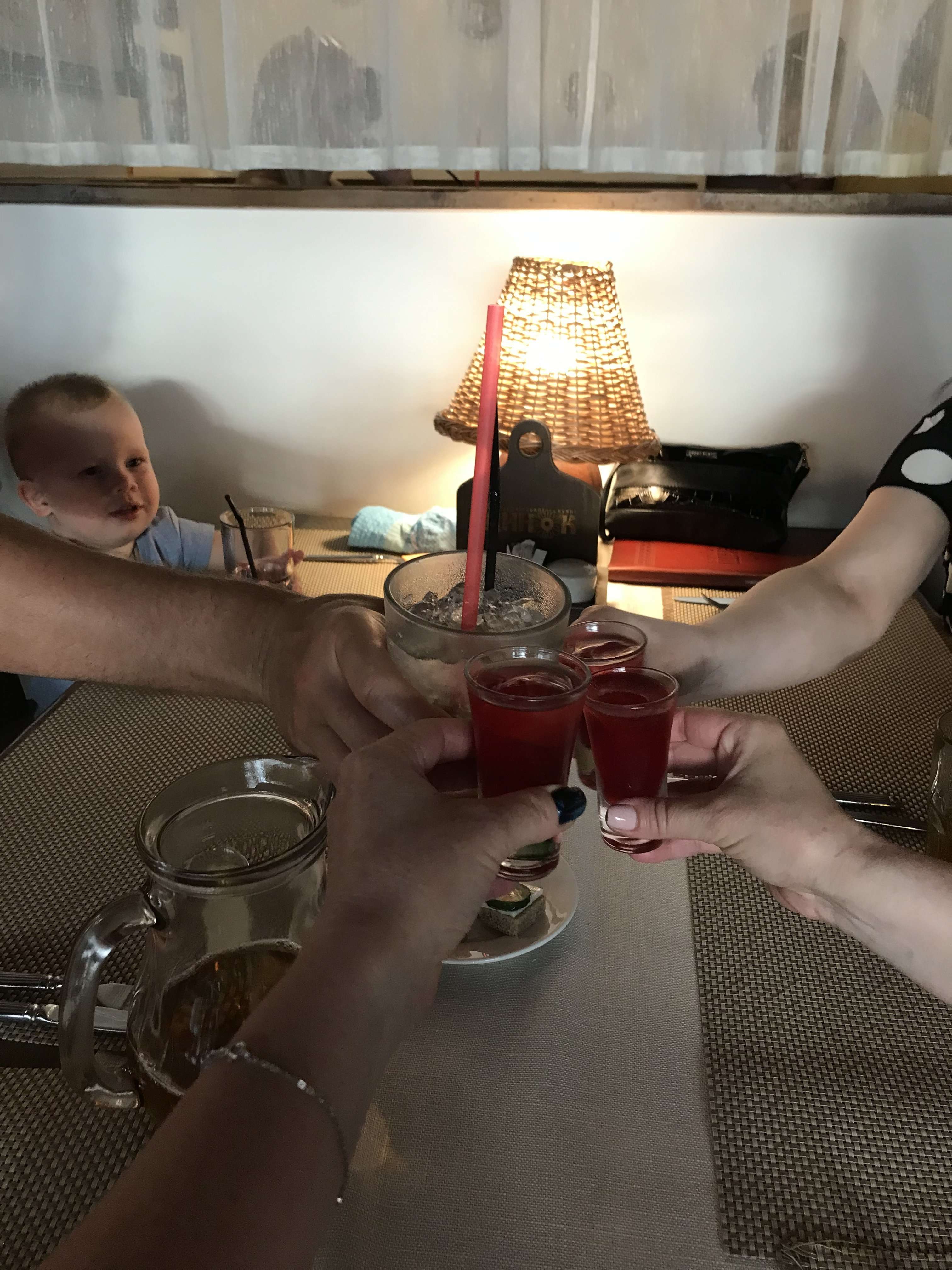 Вчера посетили Шинок. Из того что брали в основном салат с лисичками, печенью, два с уткой, вкусно. Детям фри, сырные палочки. На и холодные закуски. Друзья советовали мне там рульку, но мне и салата тёплого хватило. Им бы ещё детский уголок))