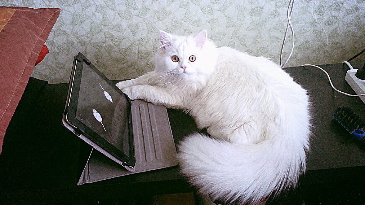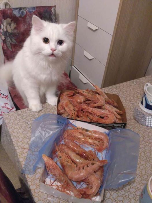 Рубидий, сорян, я тут напустила на себя умный вид, решила проверить. И вот. ВЫ правы-а я нет))) Действительно, глухота связана с белым окрасом и голубым цветом глаз, а не альбиносистостью. Там все так оказалось затейливо и интересно! Ну, факт тот что наш папа был не глухой и разноглазые дети тоже нет, хотя может на одно ухо и да, но сведений не поступало и все счастливы.) Мой рыжеглазый Пушап точно не глухой)) Мой парень интеллектуал) Поведением ничем вообще. Одна девочка(Кокос) обожает абрикосы. Вот она. Про другую девочку(Бланка) знаю мало, но все вроде как обычно Разноглазый мальчик-Кефир конечно прекрасен, я хотела взять его,давно хотела разноглазого кота, но как то так случилось что сердцем прикипела к самому маленькому, самому младшенькому) Прямо иррационально. Надо сказать он вырос очень брутальным, за неполных два года ухандокал четырех синиц и одного снегиря, причем двоих в детстве ( у меня почему то по осени они залетают в форточку. Такая странность) Одна синица в ужасе все таки спаслась, нашла дорогу в форточку назад. А как он рычит на голубей за окном!