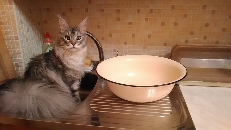 В миске сухой orijen, вечером лакомство - немного перемороженной сырой говядины или кошачий тунец из пакета. А вообще она не толстая, я специально взвесил - 3.200 всего лишь.
