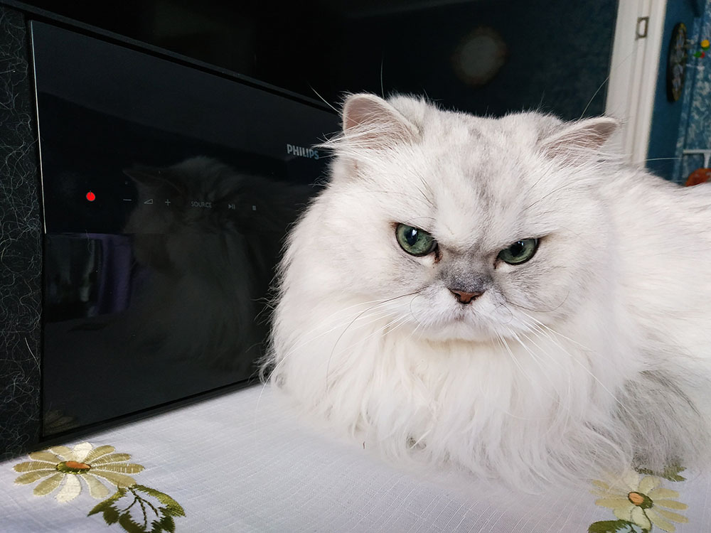 Но надо отметить, что с рук пушистое белое создание ест практически всё. И как и положено персам, молча восседает напротив едока. Но глаза, какие глаза глядят на вас!.. когда вы поглощаете очередное блюдо )