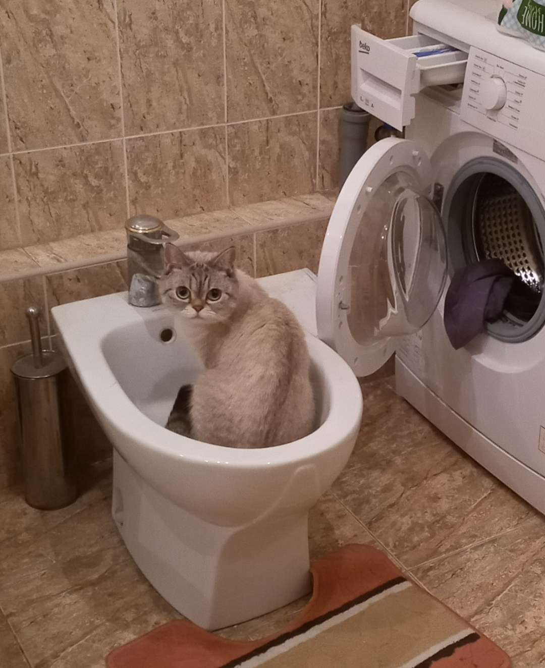 Нет, про воду он уже всё понял, пусть хотя бы в ванной на полках не орудует, там целое состояние из духов и баночек)))
