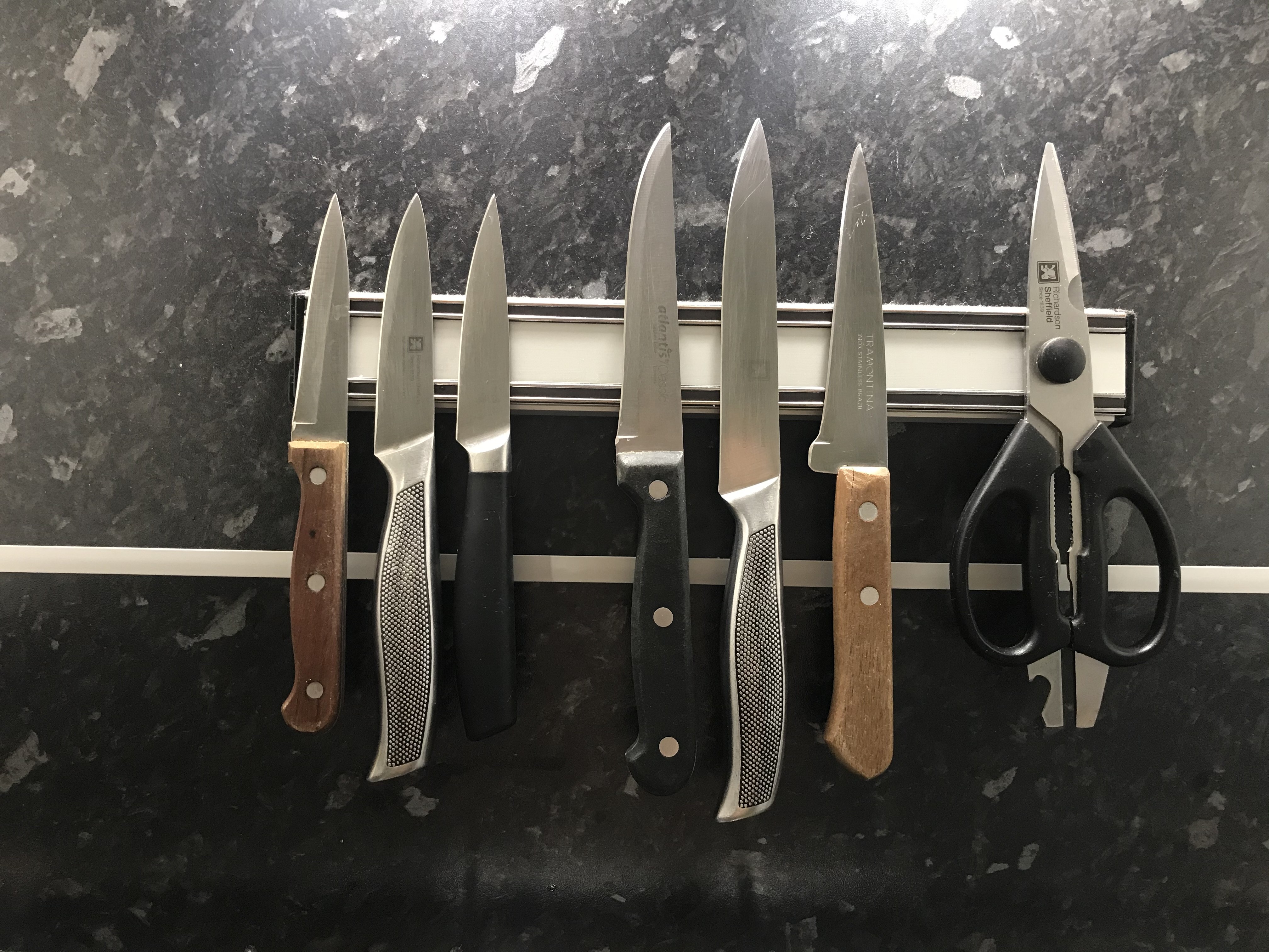 За эти деньги можно купить и хорошую сумочку) Зато не надо никуда носить и точит она лучше чем просто об камень) Я точилку включила, вжик вжик и у меня острые ножи. Как только нож начинает плохо резать помидор по кожуре, значит пора точить))) У меня обычные ножи, купленные по случаю в разных магазинах. Richardson за фишки на Лукойле. Attribute, Richardson, Tinita, Atlantis, Tramontina.