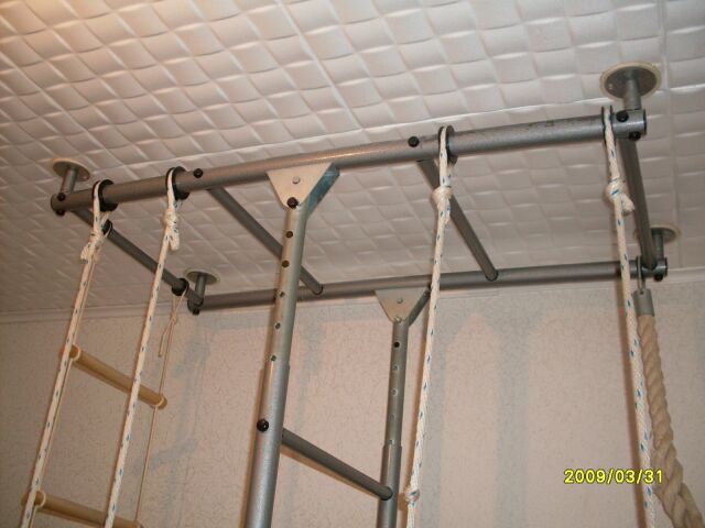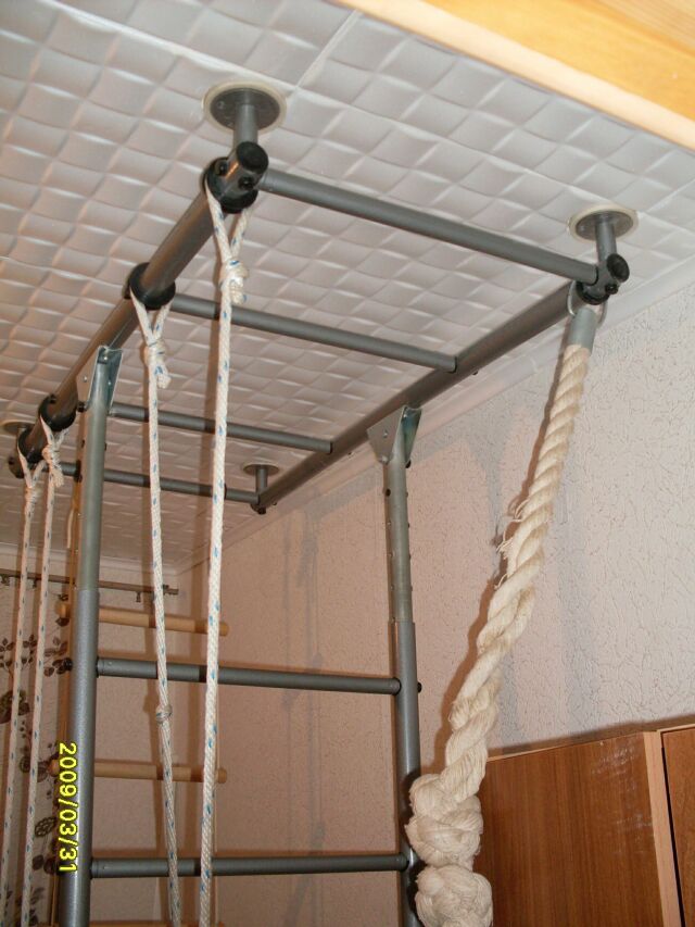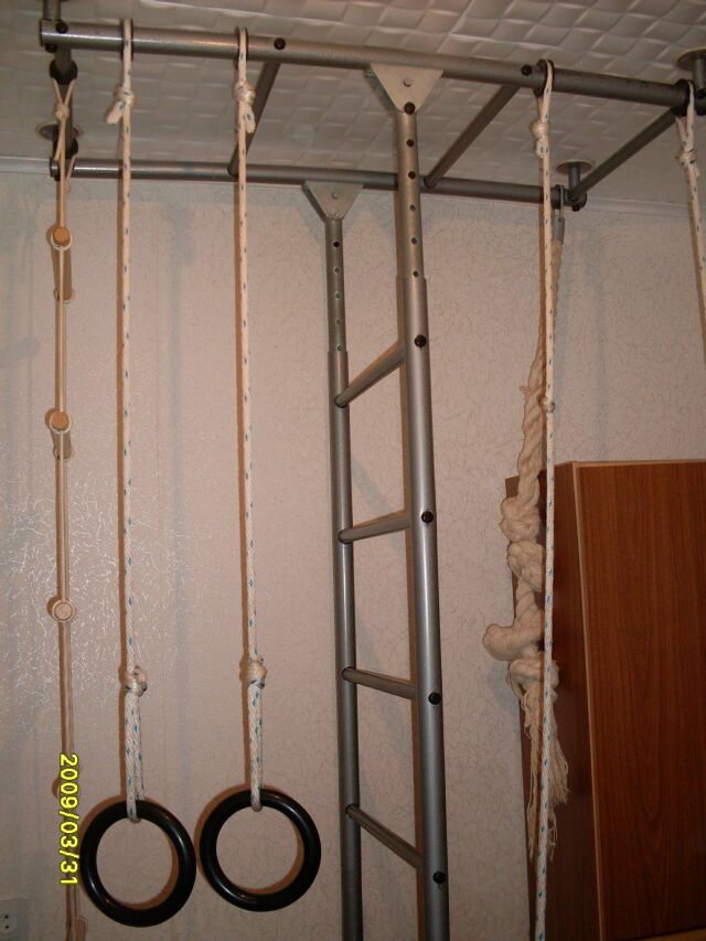 Продаю домашний спортивный уголок • шведская стенка • кольца диам. 15 см • веревочная лестница • канат Канат в процессе эксплуатации расплелся и находится в состоянии печальном, остальное в нормальном состоянии. Цену не знаю, предполагаю, что примерно 2 тыр нормально. Фото прилагаю.
