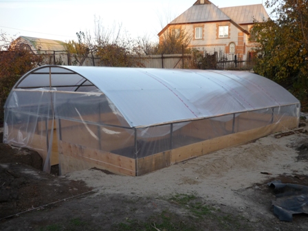 Круто! Я вкопать не сообразил и обогревать проще и еще один сарай на территории не торчит. Правда есть смысл стенки из поликарбоната сделать не гниет и + энергосбережение У меня теплица 4,5х6 "домиком". Высота без крыши 2м. 4 двери для вентиляции. Покрытие 6мм поликарбонат. Зимой ночью свежо в ней, но днем можно находиться без куртки. Поликарбонат фореве. А вот про лето надо думать ;( как бы все не сгорело. Подумываю "маскировочную" сетку натянуть на крышу. Скоро будем высаживаться постраюсь выложить фото на днях.