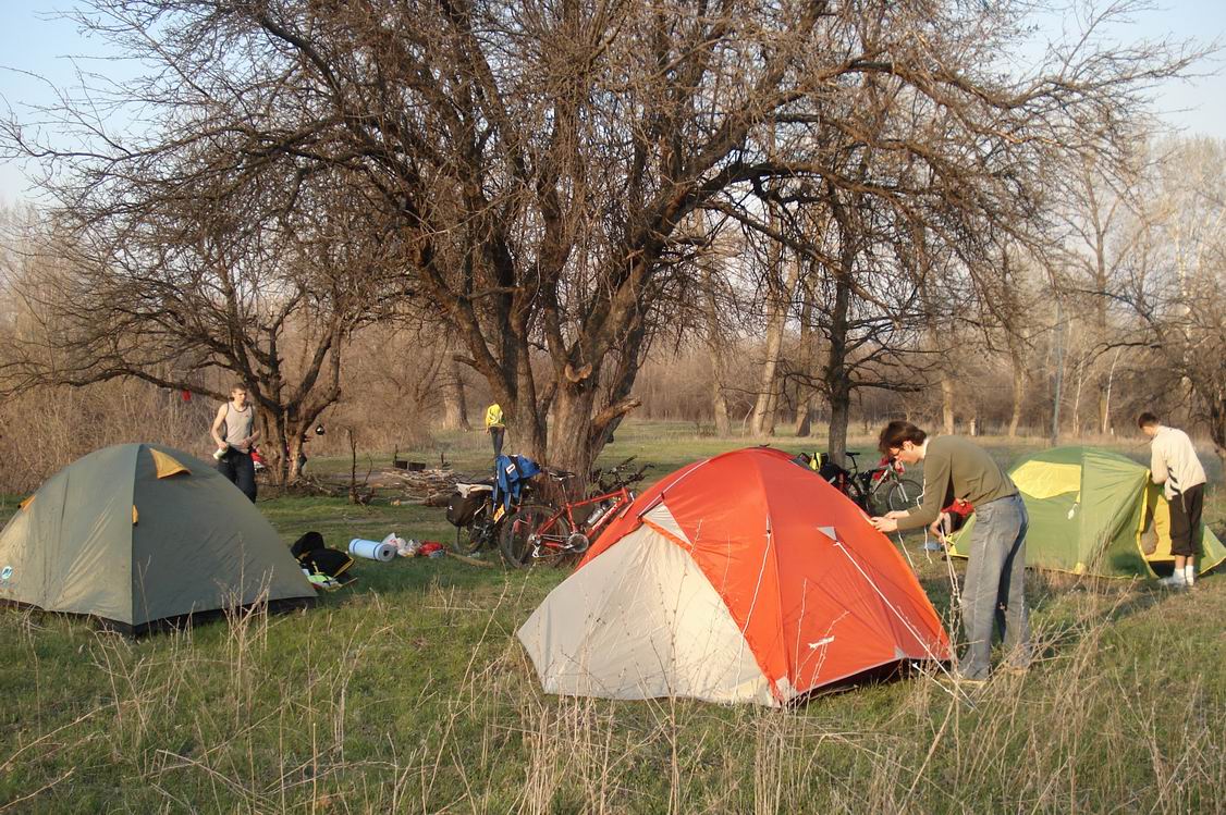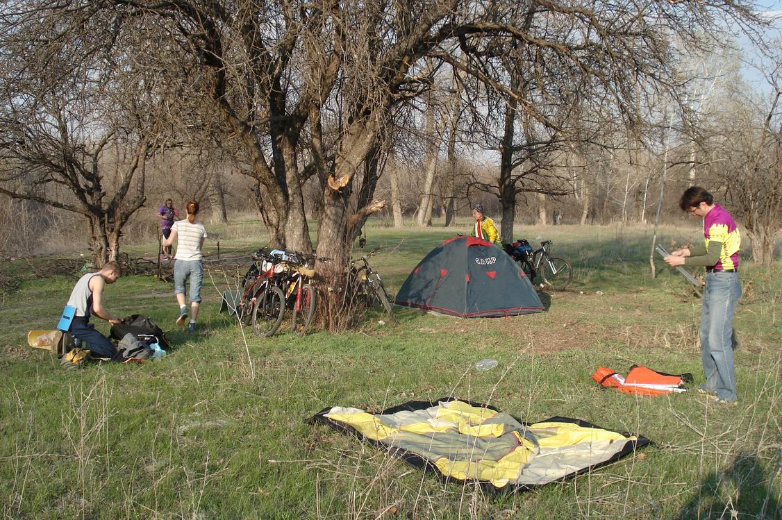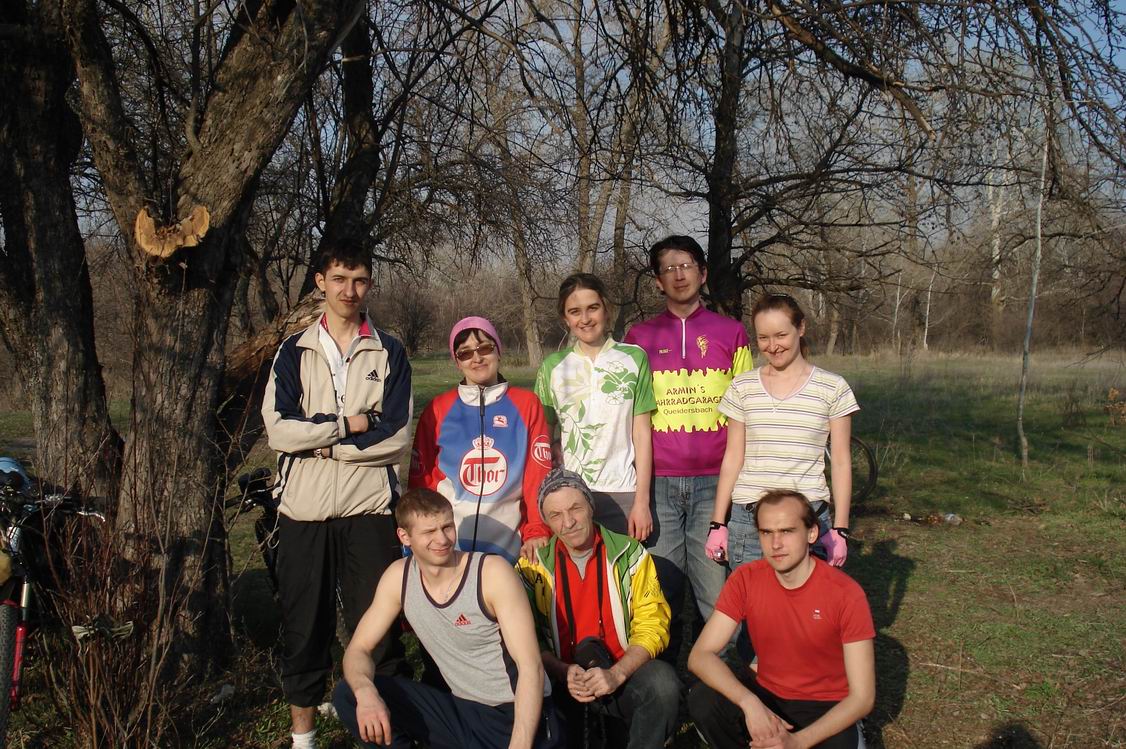 Нашей целью был Калинин или Калинов, не суть важно Главное, выдвинулись мы в субботу после обеда, и я смогла присоединиться. У меня совершенно не было времени, зато было аж 3 пункта встречи: возле дома, на 7ой Гвардейской, на проспекте Металлургов. На первую я опоздала безбожно, на вторую в пределах обещанного , на третью добрались вовремя! Путь лежал через ГЭС и Волжский. Ехалось офигенно легко. Вел нас впервые за мою велокарьеру сам президент велоклуба "Орион" В.А. Комочков. Профи видно сразу. Группа (в составе в начале 8 человек, временами - 11 человек, а по прибытии - 9 человек) действительно ехала группой. По крайней мере та часть, что впереди меня, а я была 4-ой. Темп очень комфортный (мне с непривычки временами слишком комфортный , ибо погодные и дорожные условия были практически идеальные, что тоже не так часто), остановок немного, краткие. Средняя скорость составила 17.7 км/ч (преимущественно асфальт). Расстояние от дома 60 км. Не устала совсем. Устала девушка с горным рюкзаком на плечах (как она это выдержала - не представляю). На месте были около 6 вечера. Вечер был великолепный: тепло, солнечно. Костер, еда, ля-ля, "Крокодил". Они угадали "сиреневенькую глазовыколупывательницу"!!! Не говоря уже о "затуманенном сознании", "гипертрофированной чувствительности" и т.п. Кирилл долго утверждал, что толком не знает, кто такая Мерилин Монро (все равно угадали). Но через час вспомнил, что это "та, которая пела "Пу! Пу! Пи-ду!"". "Веселый Роджер" в пантомиме В.А. был неотразим Правда, пробелы в моем образовании не позволили мне изобразить "залипающий контакт" Спать легли рано, около двух. Щас пошучу: наш препод-уролог говорил, что "спать надо ложиться около одного - а то не выспишься". Angel of low flight, который утром упорхнул с первой группой, наверное, в чем-то будет солидарен Ибо вряд ли выспался с двух до пяти Прогноз на сильное похолодание уже в ночь на воскресенье не оправдался, еще в процессе укладывания в палатку стало ясно, что в эту ночь мерзнуть не придется. И правда Вторая подгруппа отчалила в девять. Ленивые остатки группы выбрались в путь в начале одиннадцатого. Дома я оказалась только ближе к четырем, одолев смешные 40 км (что со мной сделал прошедший год!) и со Спартановки на троллейбусе. Ветер, холод... Да разве ж это холод? Просто больное колено одной участницы не давало разогнаться. В очередной раз оценила подвиг rootproc`а - катание с моим участием. На обратном пути В.А. всем встречным успевал крикнуть "Христос воскрес!", и все ответили, и даже встречный велосипедист!