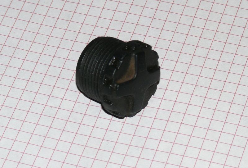 Вот только гуманитарий мог обозвать деталь с наружной резьбой гайкой! :) Функционально это тоже заглушка, но резьбовая, в нее упирается пружина. По идее, без этой детали вилка должна опуститься в крайнее нижнее положение, а пружина будет торчать наружу, как на первом фото. Выглядит же сама заглушка как на фото №2. Так?