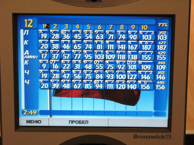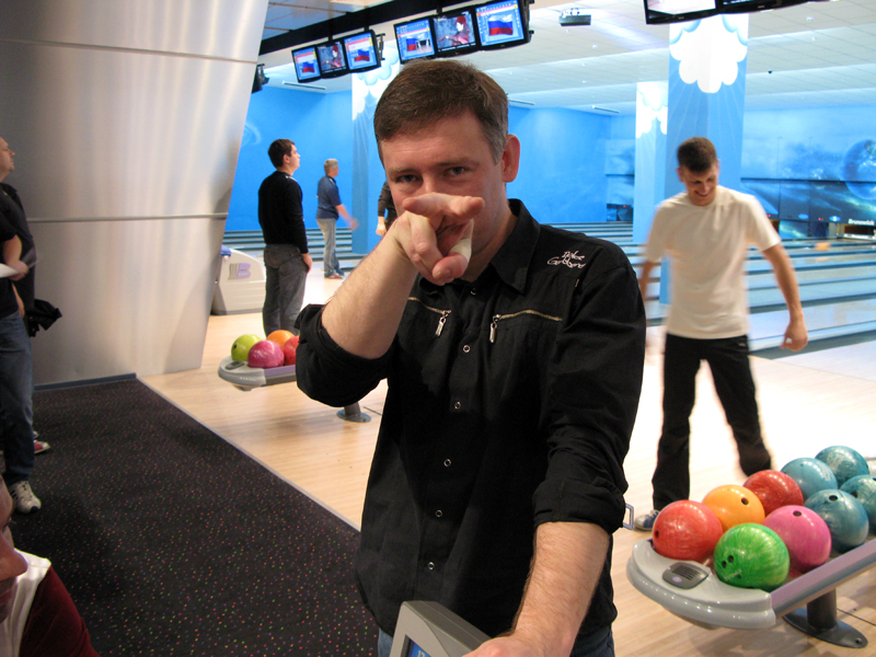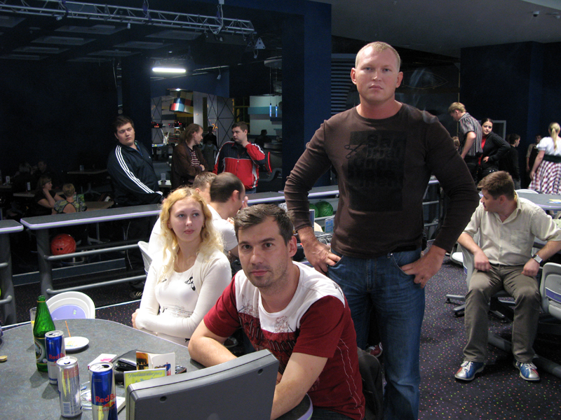 Да, с нашей команды (дорожки) только Демиург не пробрался в 16 лучших, из 96 человек! Вышли: Иван, Амина, Сергей, Я, Лорик. Своего первого соперника я одолел с, не помню каким счетом, но с хорошим перевесом Амина разнесла Ваню И мы очутились в 8-ке лучших, где нам выпало играть с Аминой, в игре я победил 140 / 95, и прошел в 4-ку. В четверке мне опять досталась девушка, но которая показывала по всей игре очень хорошие результаты, и была опасным соперником, в итоге я у нее выиграл со счетом 161 / 157 , шли ноздря в ноздрю... Но-но-но ее гандикап, как женщине, 15 очков сделал свое коварное дело, и она прошла далее биться за 1 или 2 место, а я проиграл в игре за 3 и 4 место. Усталость и 6 часов на ногах давало знать все сильнее. Тем самым занято 4-е место. Играли на Брансвике, на котором всегда проблемы с шарами, а именно соответствие веса и дырок под пальцы. Поэтому было достаточно тяжело, ведь мы всегда играли на АМФ. Перед этим турниром не было никаких тренировок. Все мы играли последний раз, что нельзя уже его вспомнить, когда это было... Без призов не осталась десятка первых мест. Особо ценные призы получили первые три места.