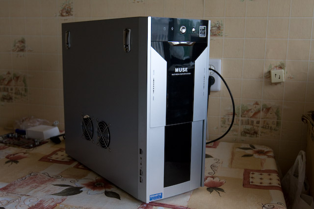 С блоком питания PowerMan 350W (на фото он просто висит, не прикручен.)
