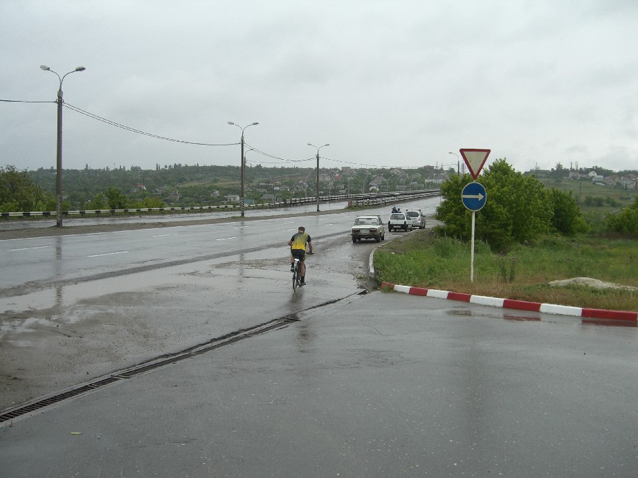 300 не 200. Немножко больше. Маршрут - Волгоград - Калач-на-Дону-Волгоград-Гумрак-Качалино(ж/д переезд)-Степной-Гумрак-Волгоград. Общим местом становится - велосипед готовится к старту накануне... Более-менее подготовив вел в 23:30 перед стартом отрубаюсь до 6:00 утра. Просыпаюсь не от будильника - огромные капли грохочут о карниз окна. Грамотно я прикупил ПИК99овский дождевик-накидку накануне, и забегая вперед, скажу: не пожалел ни разу. Подъезжаю к старту - стартующий народ в основном на шоссерах, байков на сей раз абсолютное меньшинство. Глядя на узенькую беговую резину (и на байках тоже!!!) чувствую себя на своих (Kenda 2,25 Small block eight) джипом с соревнований Париж-Дакар непонятно как и зачем поставленным на старт вместе с болидами Ф1. Ну и ладно. Не беру с собой воду. Да и зачем? Лишний груз. Мне в такую погодку до Калача пить точно не нужно, учитывая, что гнать я не собираюсь, проверено. Посматриваю на часы, на пройденый пробег и прикидываю в уме среднюю. Решаю - до почты в Калаче останавливаться не буду. Кручу ровно 22-23 км/ч. Стараюсь не раскручиваться не ускоряться, но и не "проваливать" темп. Проколы у шоссеров постоянно, вот прокололся и стоит, занимаясь своим велом Кирилл, вот прокололся Денис. Время идет, километры прибавляются бодрячком, всю дистанцию бы так. Проезжаю развилку Ростов - Элиста. Хм, а почему меня никто не обгоняет-то? Заезжаю на мост. Наконец Денис обгоняет меня сразу после моста. Въезжаю в Калач на почту, отмечаюсь. Слегка перекусываю возле какого-то магазинчика. А пить по прежнему не хочу, но правило есть правило - нужно попить до того, как пить захотелось. Пусть будет вишневый сок, он вкусный, с углеводами и, если повезет, из вишни. На обратном пути возле Нового Рогачика прокалываюсь, несмотря на чудо-резину "ловлю" новенький саморез от грязезащиты какой-то тачки в переднее колесо, теряю темп, что поделать? Хорошо, дождь вдруг прекратился - как будто кран в душевой перекрыли. Останавливается рядом Кирилл (на машине) оказывается, он сошел с дистанции из за проколов и курсирует теперь вдоль трассы, на случай, если марафонцам понадобится помощь. Проехал Новый Рогачик - и перед Максимкой прямо сверху на меня сияет солнце. Поднимает настроение, а вот ноги уже "подсели" и не желают подниматься на Максимку в хорошем темпе. Может быть закончить первый круг и домой? Тем более, что практически все кто стартовал сошли... Но ведь еще утром я знал - я не сойду. Снова начнется дождь, я поеду дальше, все кончится глубокой ночью, будет жутковато ехать от Качалино, по абсолютно темной дороге, будут ныть связки на следующий день. Все так и было. 200 км я проехал за 10:40, это на час лучше, чем марафон-200, но там в кафешке я расслаблялся принципиально. Помню как тетенька на ж/д переезде в Качалино спрашивала меня "А вам за этот спорт хоть платят?" Непередаваемо сильно хотелось спать перед Степным, километров за 15. После Степного отпустило. Дорожка к Новой Надежде спать не давала, мягко скажем. Резко поднялось настроение от совершенно городского освещения Гумрака. В 2:49 одометр компьютера показал 300 км, я на старте сбрасывал (значит, я ЭТО сделал). Но мне ведь еще ехать домой к Комочкову, для таких, припозднившихся финиш домашний. Показалось - нереально долго подымался на 39 Гвардейскую нереально долго искал улицу Зорге (я буду доооооолго гнать велосипед )....... Вот мой мокрый бревет. (