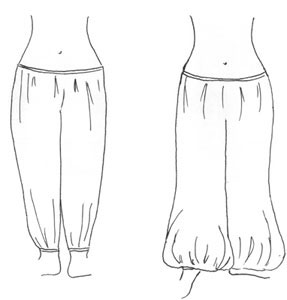 Обозначу cвою позицию развернуто Я ничего не имею против НОВОГО в одежде. Пусть люди носят то, что хотят. Просто помимо понятия "удобно - неудобно", есть понятие "красиво - не красиво" или, если хотите, "радует глаз - не радует глаз". Очень положительно отношусь к одежде, которая делает человека СИМПАТИЧНЕЕ, чем он, может быть, есть на самом деле. И с такой одеждой всегда готова поэкспериментировать. Например, считаю что надевать балахон на полного человека придумал точно худой специалист (по-принципу "скрыть с глаз долой"). А вот беларусские костюмы точно придумала полная женщина "на себя", потому что сколько бы ни видела полных дам в этих самых костюмах - все душки. И не надо путать происхождение шаровары (шальвары) с брюками-зуавами. Первые - это как раз то, о чем Вы писали весьма сексуальные штаны и крой вовсе не тот, что у обычных. Их придумывали на Востоке, для ЖЕНЩИН, для УКРАШЕНИЯ. А брюки-зуавы, Вы же сами писали, шили для солдат французской армии и они (брюки) были вариацией галифе. Ну я Вас умоляю, это же НЕБО и ЗЕМЛЯ!!! И, ладно, я еще допускаю, что можно надеть на себя брендированные штаны и заткнуть рот оценивающим ценой... Но когда надевают рыночный ширпотреб!!! Это выглядит убого. И женщина из женщины превращается в НЕЧТО. И, давайте уж отдадим должное этнике: если штаны этнические, то и шейте их в нужном стиле, соблюдая выбор тканей и колор (рисунок 1). И не надо "творить" нечто "европейское", потому что это будет выглядеть по меньшей мере странно (рисунок 2, 3, 4).
