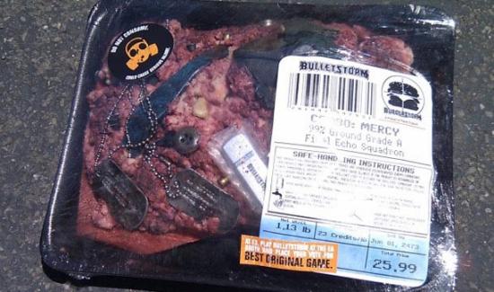 Сегодня сайту ripten.com пришла забавная посылка. Это небольшая упаковка с фаршом из какого-то солдафона, а если быть точнее, то, что от него осталось. Как вы думаете в честь чего это? Конечно же это реклама нового экшена Bulletstorm от People Can Fly и Epic Games. Честно можно сказать, это самая оригинальная реклама игры за последнее время.