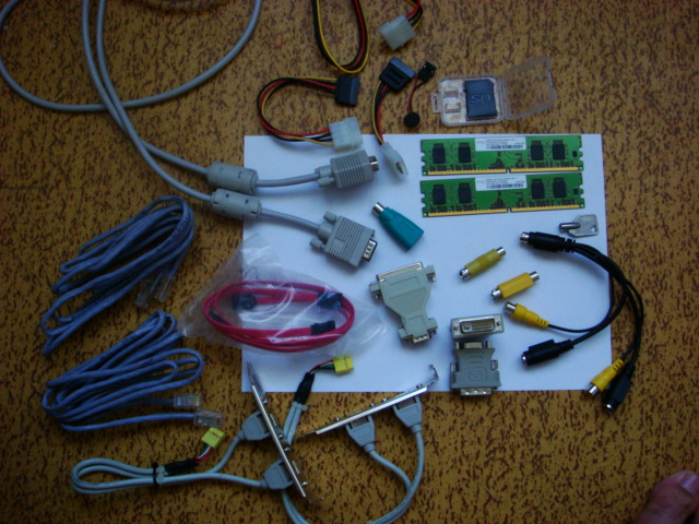 Меняю. VGA кабель 1.8 метра 1 шт. DVI переходники 2 шт. Память ддр 2 553 я по 256 мб. 2 шт. Кабель под сеть 2 шт. Заглушка для ноута асус под SD карту 1 шт. Прочий хлам (переходники питания сата, кабеля сата и вроде ком переходник) на фото видно. могу болтов горсть отсыпать компьютерных разных. Собственно меняется это богатство на телефона мобильный рабочий. Ждуу собсчений