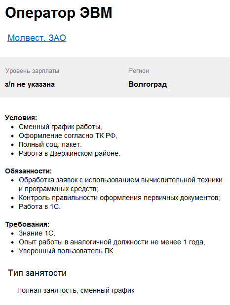просто по данной теме 2009 год ххх: Закончил политехнический колледж, ищу работу по специальности - оператор вычислительных машин. <телефон> Роман. yyy: Этих "машин" давно уже нет. Роман, Вы опоздали. украдено с баша