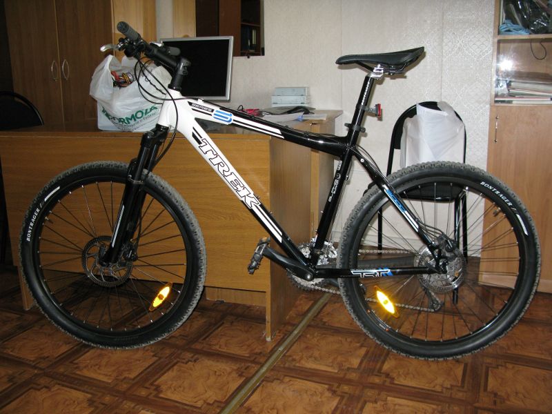 На моем гидра shimano, из навески - сзади деор, спереди аливио, манетки деор. Вилка сантур xcr с блокировкой и регулировкой отбоя, ход 100. Вообще есть две версии велов трек. те что со sram навеской - для США, те что с shimano - для европы. Впринципе и тормазами могут отичаться и вилками. завтра может фотки своего вставлю.