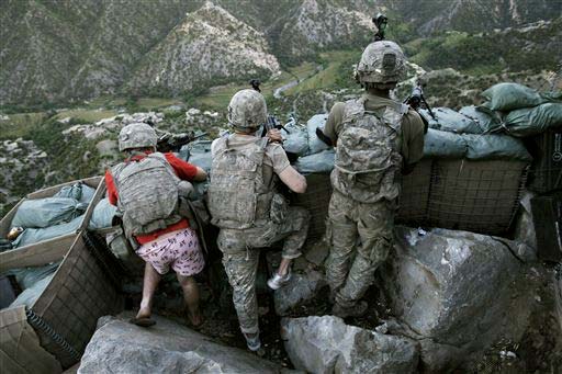 На полном серьезе: Второй приз в категории «Люди в новостях» присужден американскому фотографу Дэвиду Гуттенфельдеру (David Guttenfelder), за снимок для Associated Press, на котором изображены солдаты армии США, отражающие 18 мая нападение боевиков талибов в долине Коренгал (Korengal) на востоке Афганистана.